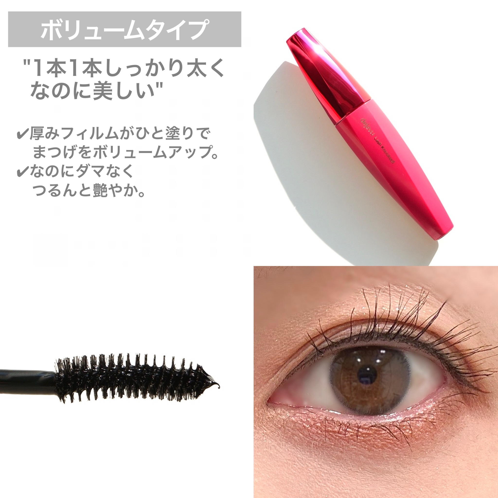 今、まつげはブラックで仕上げるのがトレンド! 仕上がりを選べる3タイプのブラックを比較♡ 厚みのあるフィルムが、ひと塗りでまつげ1本1本太くしっかりとボリュームアップ✨ 見えないまつげも際立てる! 抜け感があるのに存在感のある仕上がり🫶🏻