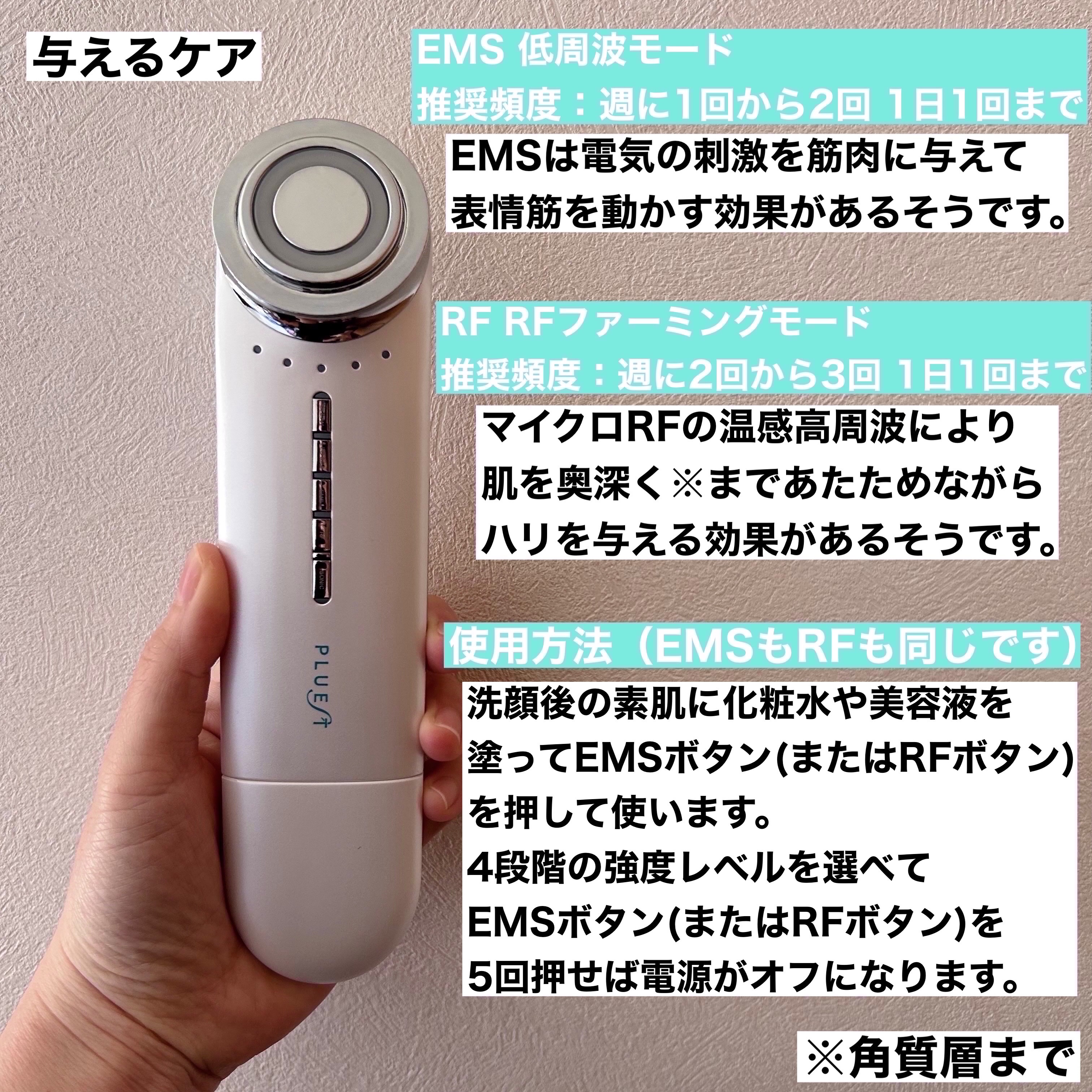 - ããããæ©ã¿ããŸãšããŠå¹ãé£ã°ã ã¯ã³ã©ã³ã¯äžã®è¥èŠãçŽ èãž èœãšãã±ã¢ãã衚æ çã±ã¢ãŸã§6ã€ã®ã¢ãŒããæèŒãã倿©èœçŸé¡åšã ãã€ãã®ã¹ãã³ã±ã¢ã«ãã©ã¹ããããšã§ããæ·±ãâ»ãŸã§ã¢ãããŒãã ã¢ãŒããçµã¿åãããããšã§ææ©ã广ãé«ããããšãã§ããŸãã â»è§è³ªå±€ãŸã§ âèœãšãã±ã¢ããåŒãäžãã±ã¢ãŸã§éžã¹ã6ã€ã®ã¢ãŒã 01. ããŒãªã³ã° è¶ é³æ³¢æ¯åã«ãããå€ãè§è³ªãæ¯ç©Žæ±ããåãé€ããŸãã æšå¥šé »åºŠïŒé±ã«2~3åã1æ¥1åãŸã§ 02. ã€ãªã³ã¯ã¬ã³ãžã³ã° ã€ãªã³ã®åã§æ¯ç©Žã®å¥¥ã«ãã³ãã€ããæ±ããåžãäžããŸãã æšå¥šé »åºŠïŒé±ã«2~3åã1æ¥1åãŸã§ â»ããŒãªã³ã°ã±ã¢ãšæ¥ãåããŠã䜿çšããã ãããšãããããããŸãã 03. ã¢ã€ã¹ãã£ãŒ è¶ é³æ³¢æ¯åã§åªããã¿ããã³ã°ãããããã®æµžé*ãé«ããŸãã æšå¥šé »åºŠïŒ1æ¥1å 04. LED èµ€è²LEDãèã®åŒãç· ããšåŒŸåã®æ¹åããµããŒãã æšå¥šé »åºŠïŒ1æ¥1å 05. EMS 黿°åºæ¿ãçèã«äžãã衚æ çãåãããŸãã æšå¥šé »åºŠïŒé±ã«1~2åã1æ¥1åãŸã§ â»LEDãšã®äœµçšãå¯èœ 06. RF æž©æé«åšæ³¢ã«ãããèã奥深ã*ãŸã§ãããããªããããªãäžããŸãã æšå¥šé »åºŠïŒé±ã«2ïœ3åã1æ¥1åãŸã§ â»LEDãšã®äœµçšãå¯èœ ïŒ è§è³ªå±€ãŸã§