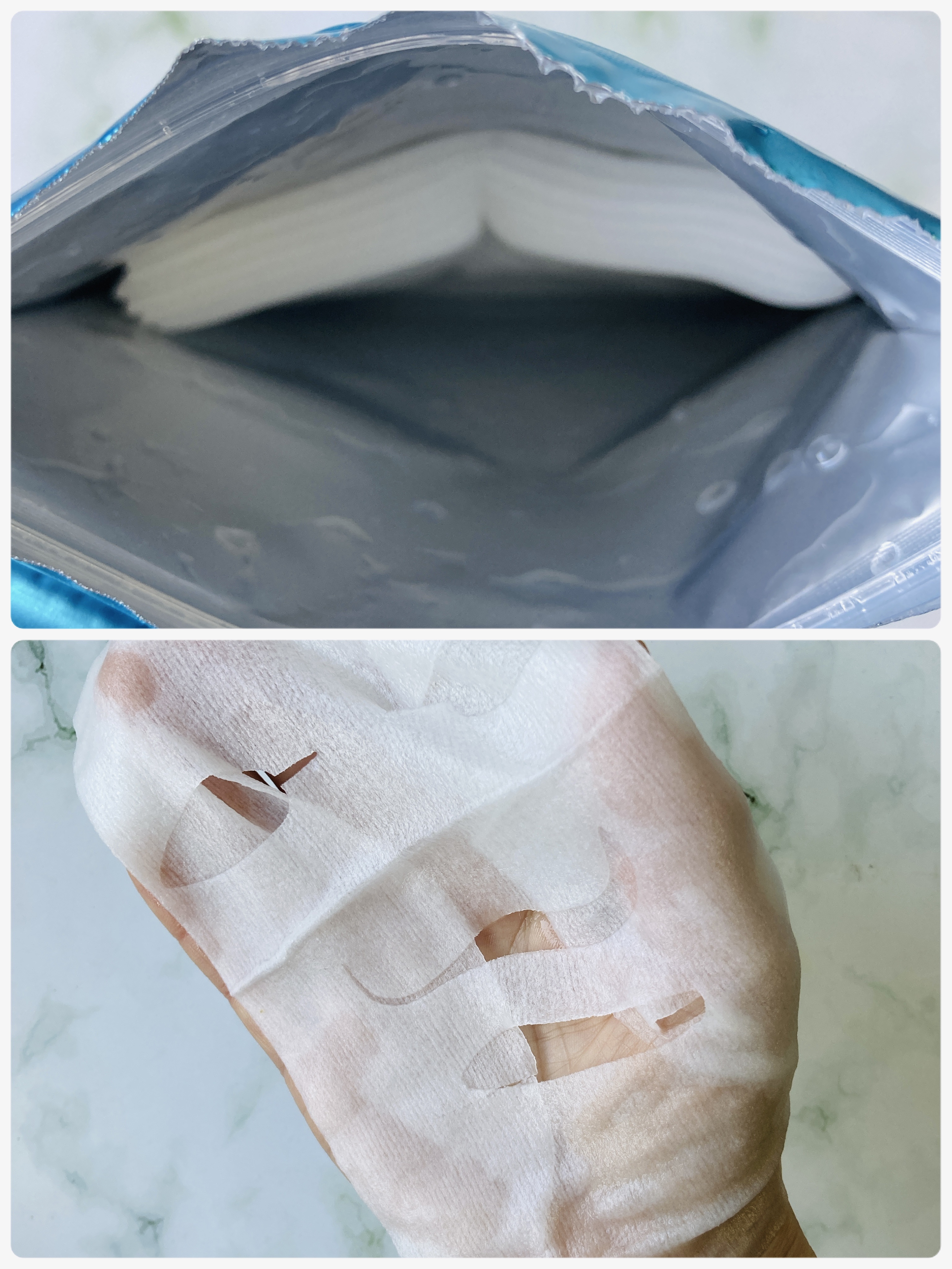 肌荒れ防止成分のアゼライン酸誘導体配合 そして整肌成分のナイアシンアミドやマイルドAHA配合 ひたひたな美容成分がたっぷりでずっしりと重たい印象を受けました シートマスクが柔らかく伸びがいいので顔にフィットさせやすかったです🩵