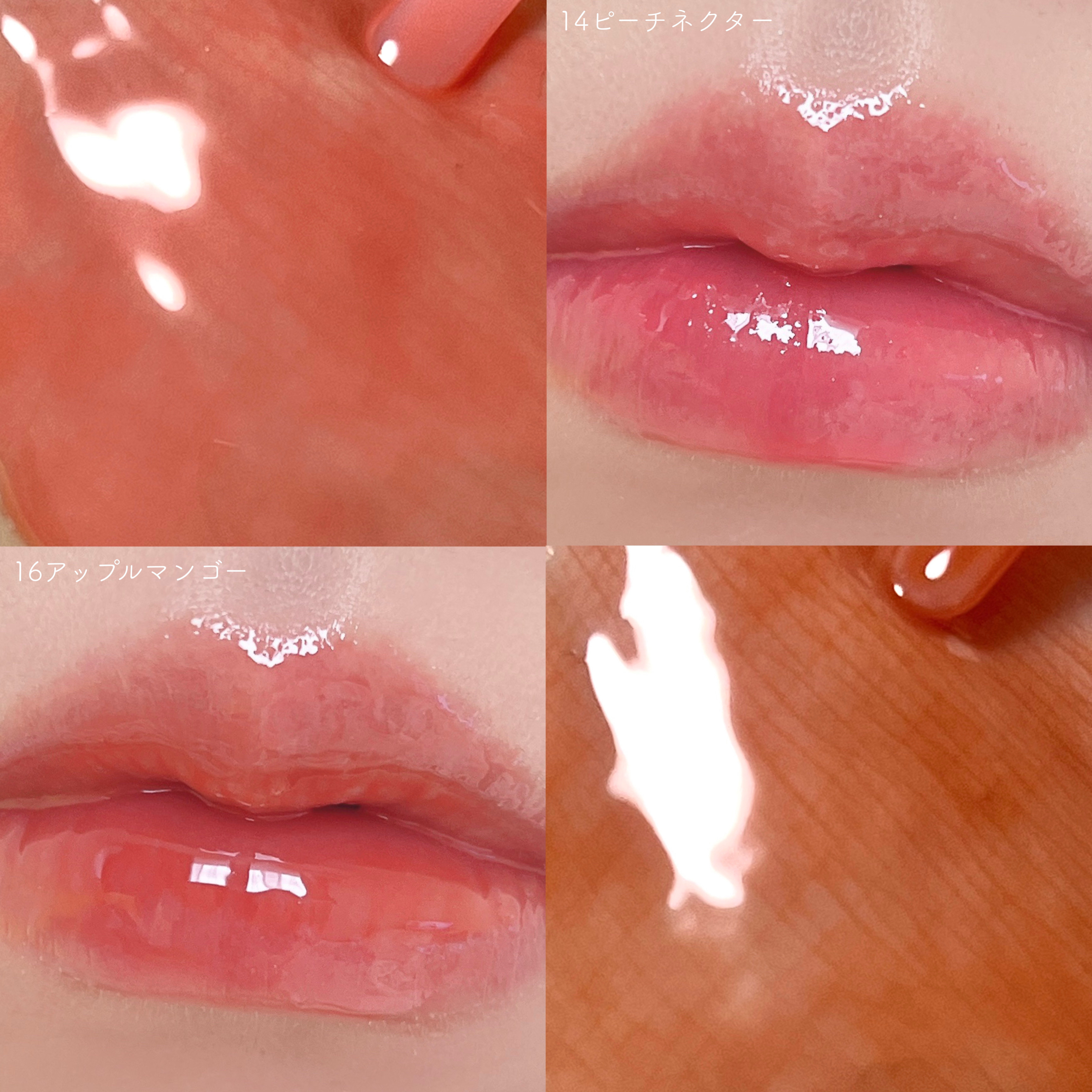 プランプ効果があって、唇にボリュームとツヤ感を演出してくれます。 ・11 ハニーレモン プランピングが強いタイプで、唇にボリュームを出してくれます。微細なラメが美しいです🫶一番お気に入り ・16 アップルマンゴー(日本限定) オシャレな色味で、モードな雰囲気もありつつ、透明感があるので使いやすいです。