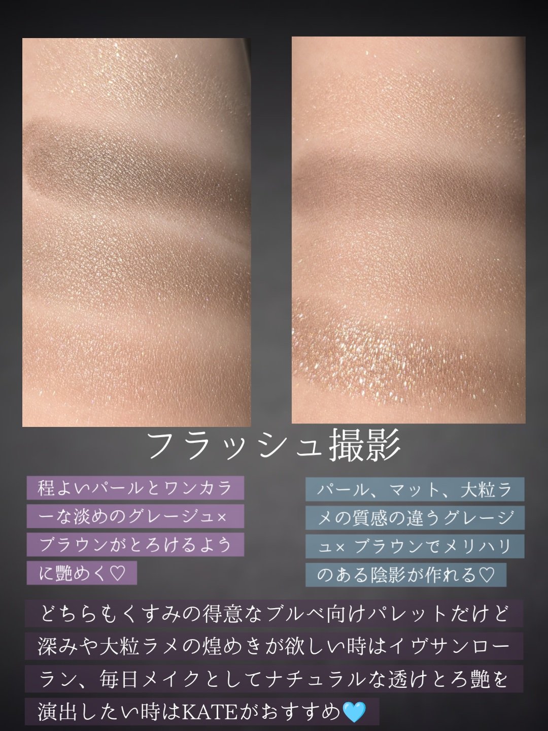 1月25日発売されたばかりのKATEの新しいアイシャドウ。SNSで見つけた時から絶対買おうと決めてたもの💖 最近のKATEのアイシャドウはグラデーションしやすい締め色のないカラーばかりでメイクしやすい🥰 KATEはプチプラなのに粉質もしっとりしてるしパール感も綺麗で可愛い💕