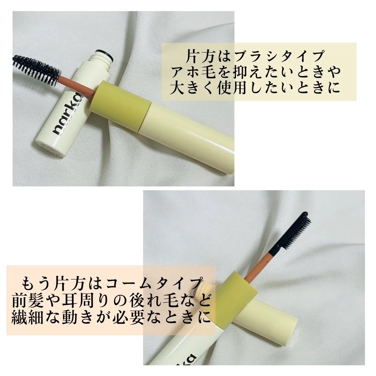 商品提供いただいて使ってみました。Narkaハイプフィットヘアマスカラ♡繊細で感覚的なスタイリングを演出する、ポイントリペアデュアルヘアマスカラです!ベタつかずに固定する2種類のブラシで、まとめ髪や浮き毛を整え、前髪や後れ毛の細かいディティー...