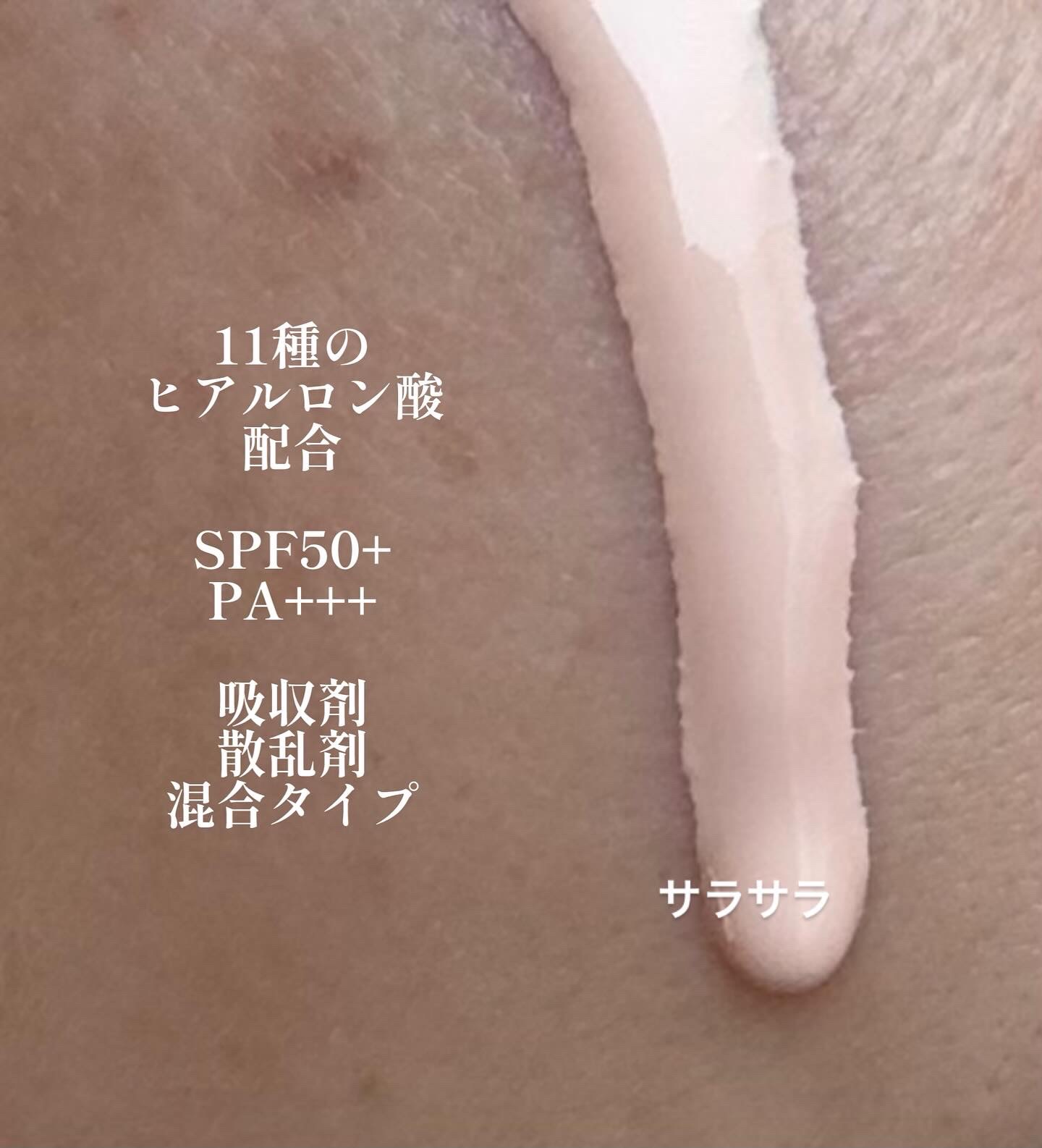 透明感のあるナチュラルな仕上がり◎ 脱ファンデーションできそうなほどナチュラルさがあります 11種類のヒアルロン酸が肌に潤いを満たしてくれます 弾力のあるツヤ肌を演出してくれます SPF50+ PA+++なので、日焼けケアもしてくれます