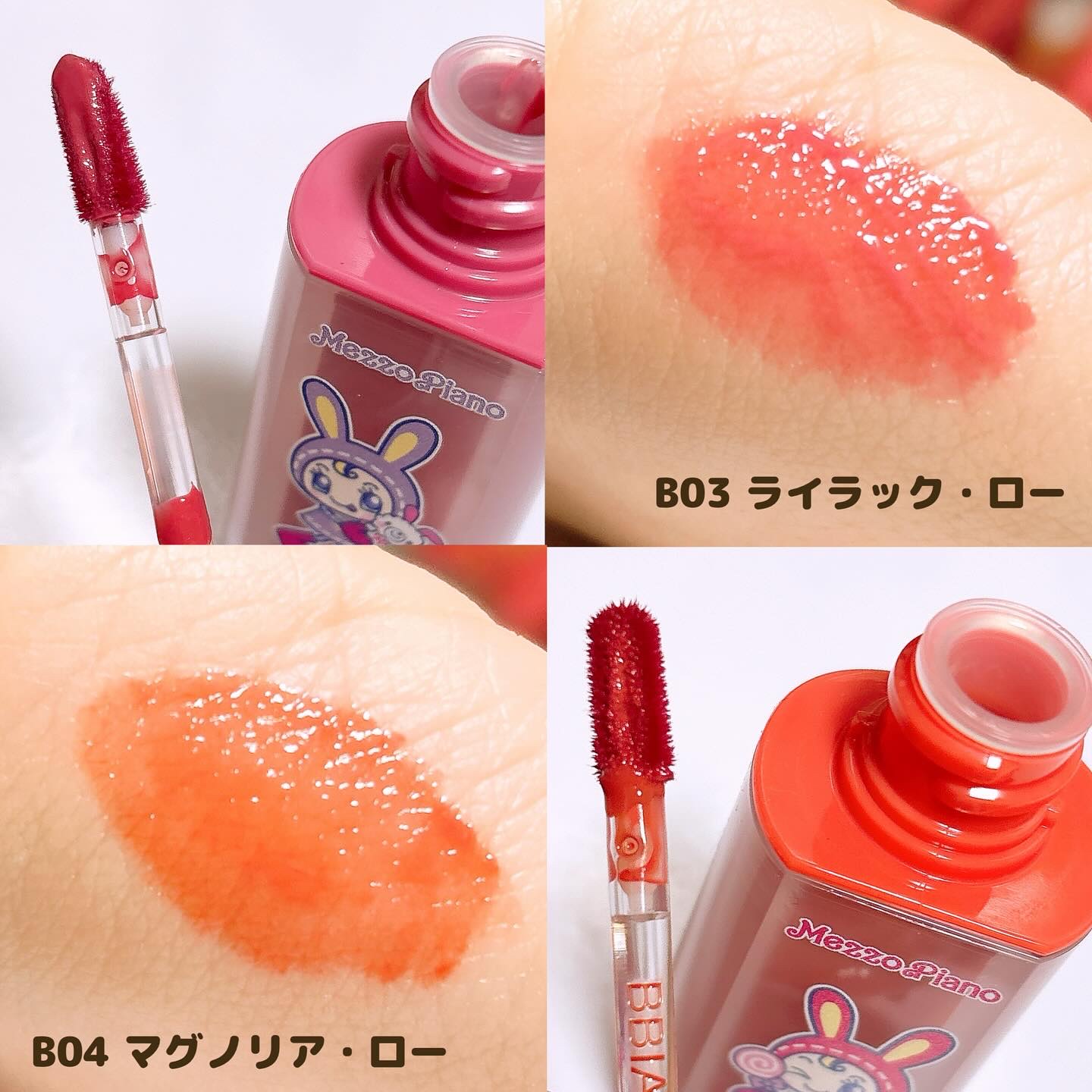 BBIAの飲み会リップこと「ローティント」と平成のジュニアブームを牽引した「メゾピアノ」とのコラボアイテム🐰🎀 2025年1月27日発売! 透明で澄んだツヤ𓈒𓋜痛くないプランパー効果でぷっくりボリューム💋ほんのりラメ入りで手持ちのカラーリップと合わせて可愛く🫶🏻💗 ̖́- ローティントだけでなく他の商品も3月中旬に発売されるよꕀ⋆!🐰🎵ラストアイパレット01,02/ローティントミニ01-09/ローグロスミニ01