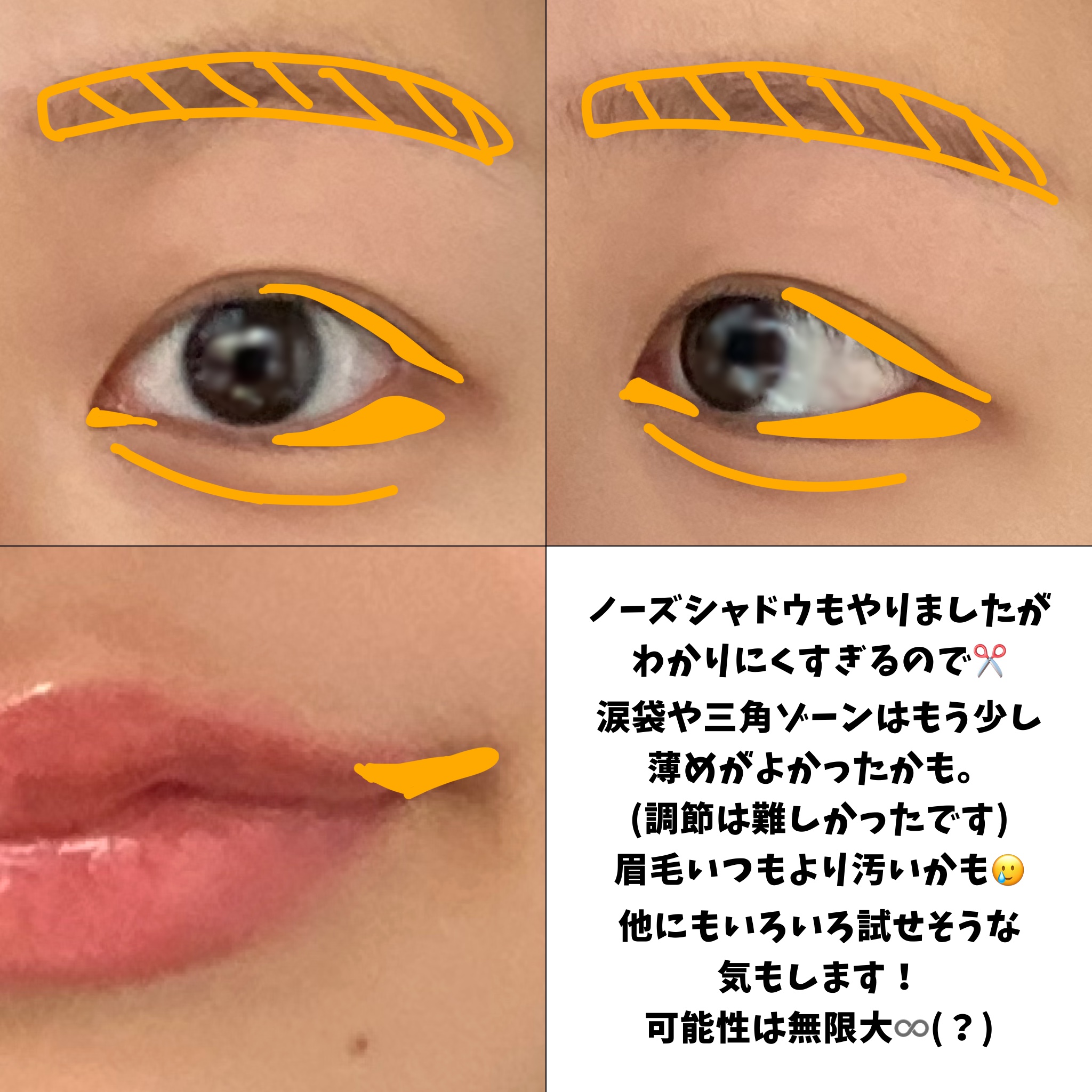 トーンアップの下地、日焼け止めはいつも通り塗りましょう! 影です!!! 証明写真は光が強めなのでとにかく影を意識しましょう!! 鼻筋をしっかり作って輪郭もちゃんと削ります。 涙袋!! 可能な限り影は濃いめで!! まつ毛はギャン上げは避けた方がいいです! クリアなマスカラ下地などは他にも持っていますが ここで大事なのはカールキープではなくバレないことなので安全なのがこのマスカラなのです!! 本っ当にピンク系の血色感は写りにくいです。 髪型!! 画像だと分かりにくいかもしれませんが 前髪はあってもちゃんと目の上にしましょう! あとは触覚! 最近?はない人も多いかもしれませんが、ある人は自分の輪郭にあった触覚を研究しましょう!!