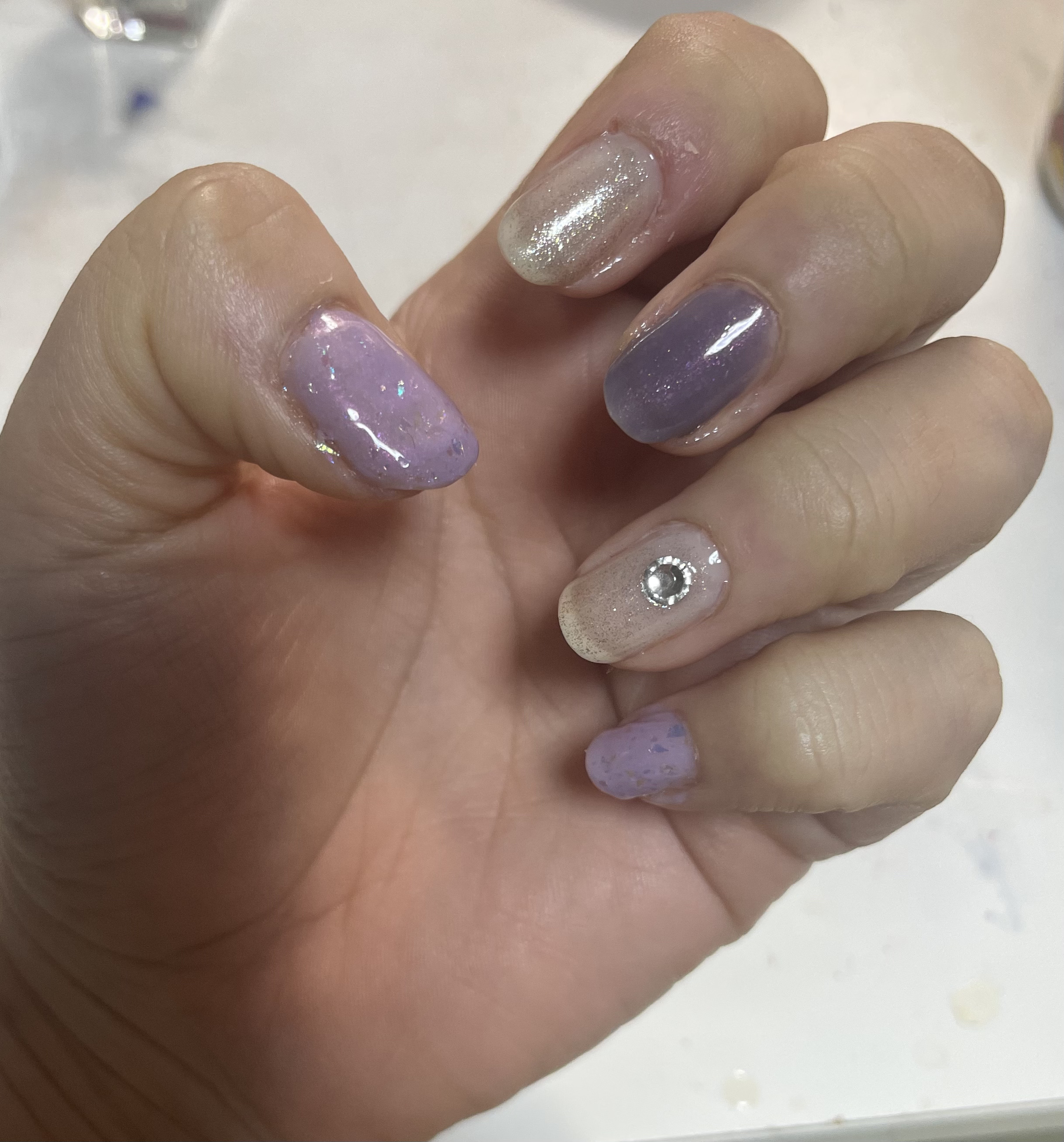 不器用セルフネイル◆◆◈ベース親指、中指:キャンメイクファンデーションカラーズ09→キャンメイクカラフルネイルズN29人差指、小指:キャンメイクファンデーションカラーズ01薬指:キャンメイクカラフルネイルズN95◈飾り人差指:ACヴィーガンネ...