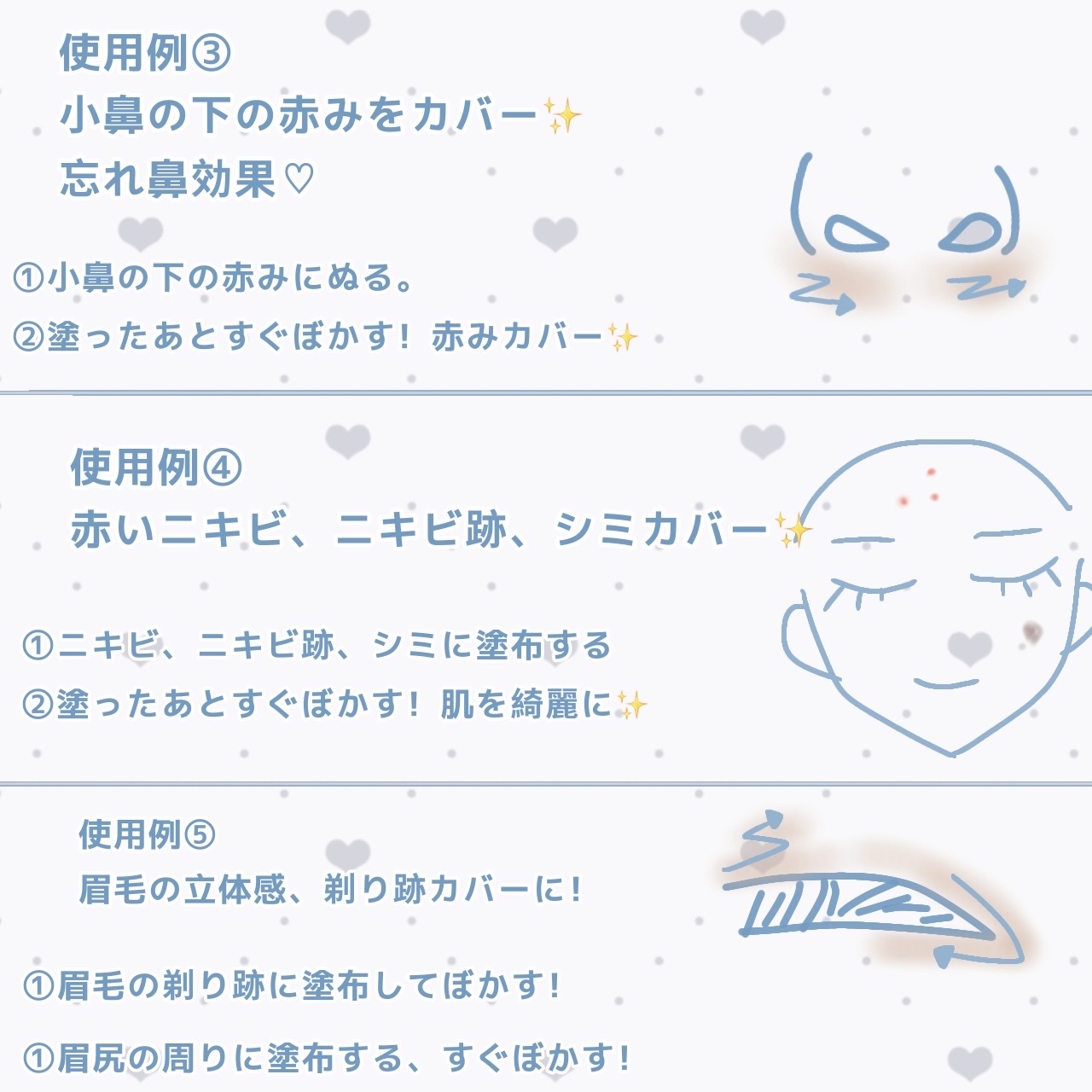 超超便利で1本持ってて損はしません‼️ 便利な使い方を5選紹介しますので参考にしてくださいね ෆ˚* 涙袋ぷっくり✨️ 生まれつき風な涙袋に◎ 赤いニキビ、ニキビ跡、シミなど気になる所をカバー!
