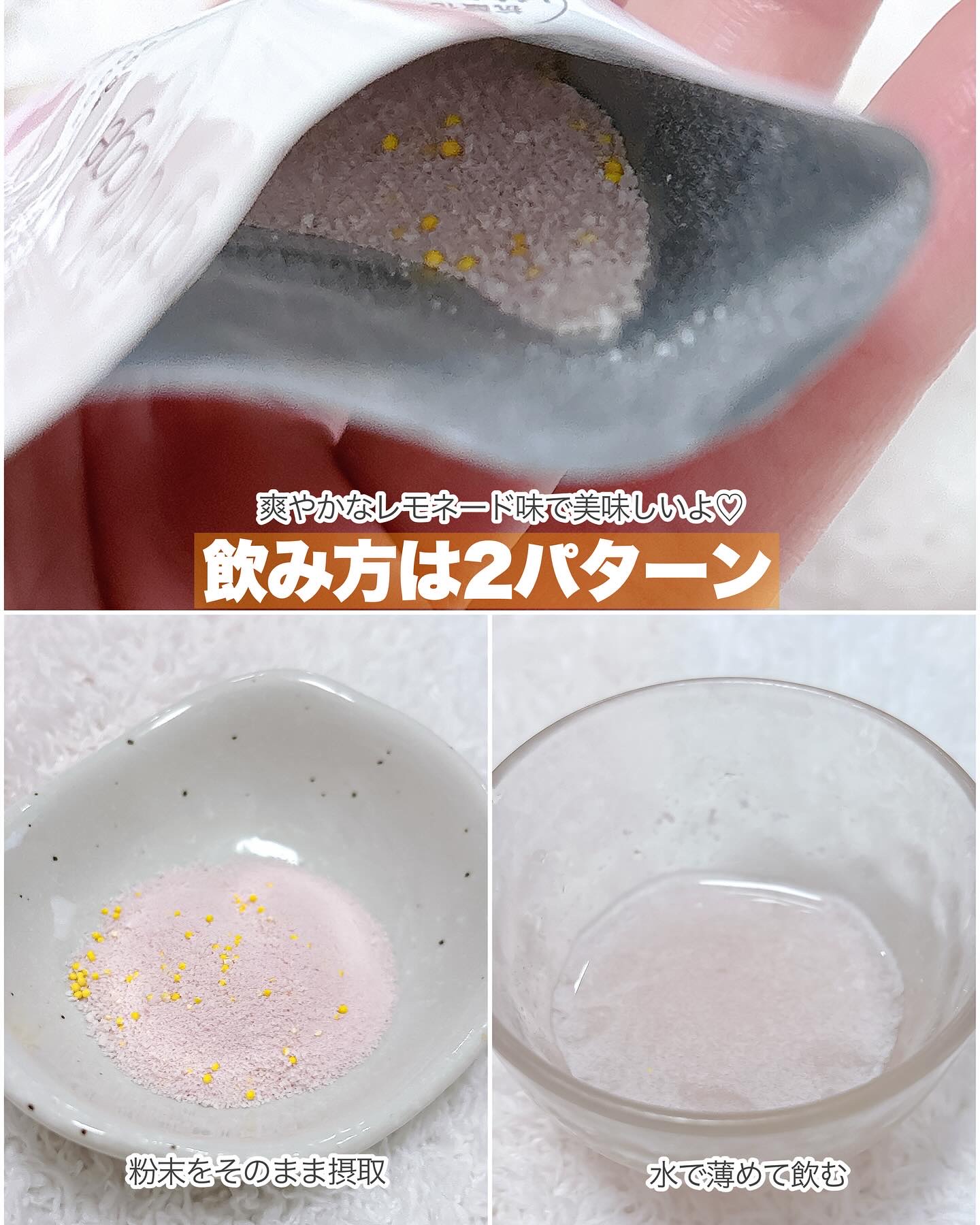 | 粉末のままで試してみたのですが 溶けるのが早くて良かったです♡ レモネード味がスッキリ🍋 | 詳細を見る | ||