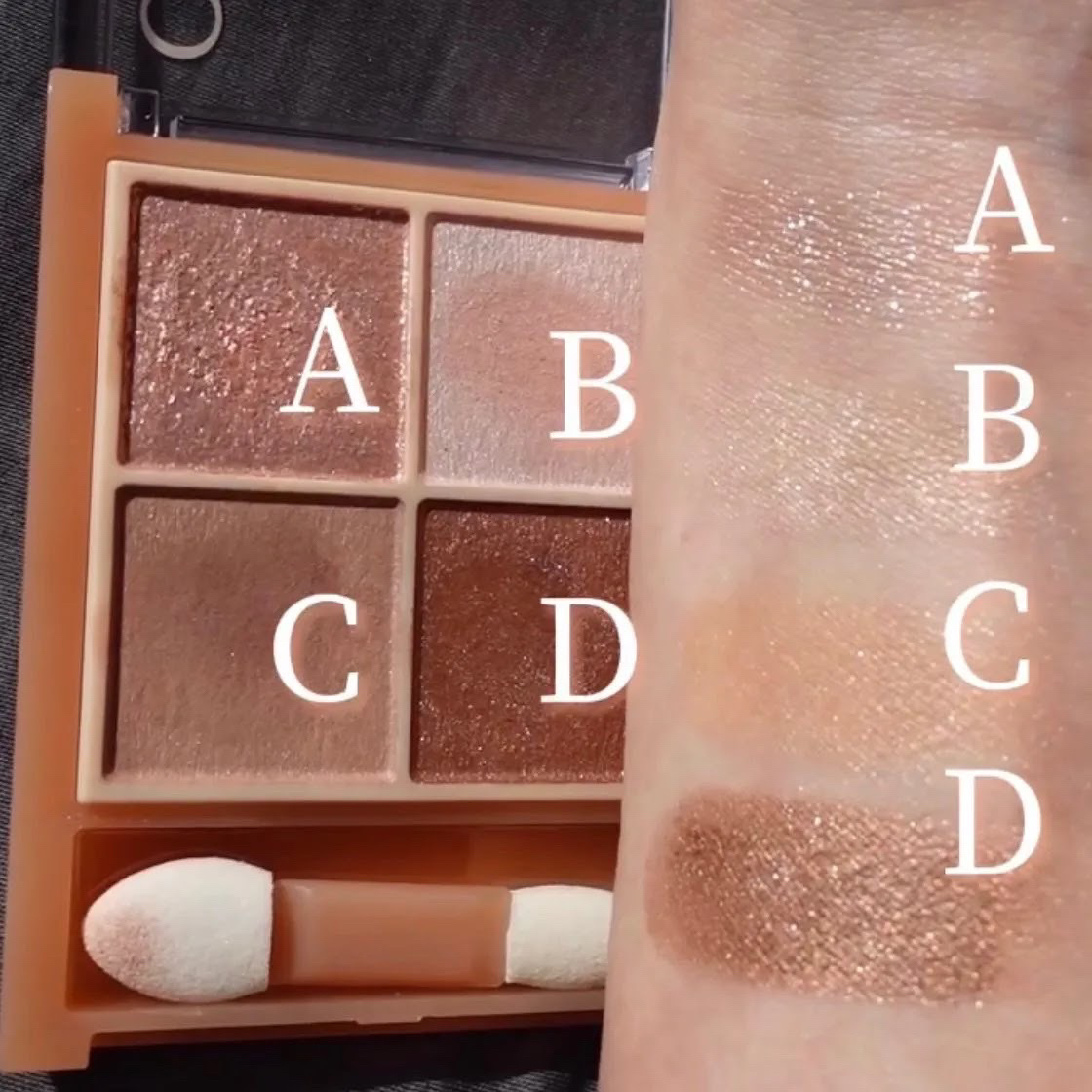 - ラメ・パール・マット3質感の4色アイシャドウ。 肌馴染みの良いベージュを基調としたカラー。ラメ・パール・マットの3質感を重ねて、自然にまぶたを強調し奥行のある大きな目元へ。 しっとり溶け込むような柔らかなパウダーなので、スルスル伸びてまぶたにピタッと密着。保湿成分(スクワラン・ホホバ種子油)配合。