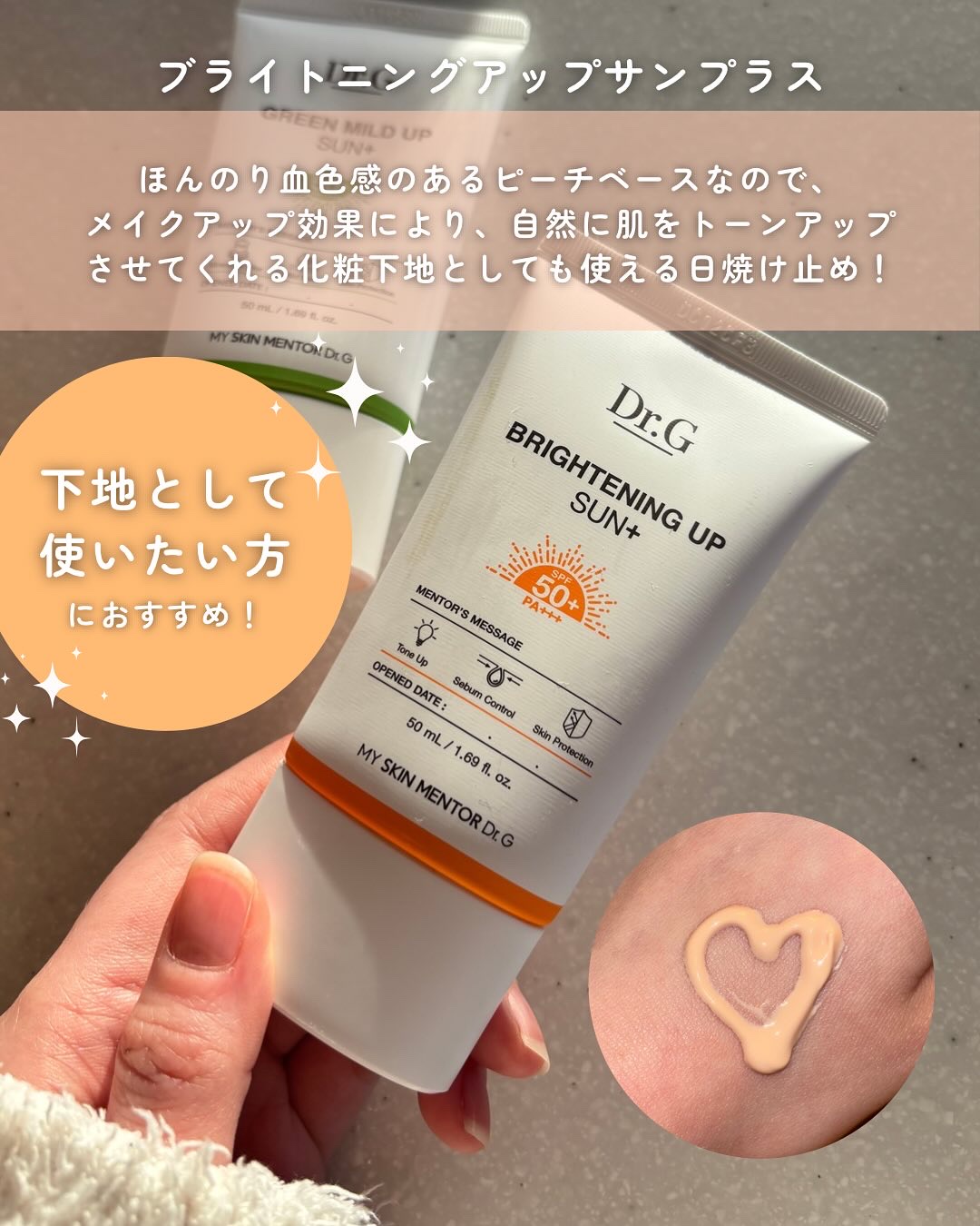 オリーブヤングで5年間連続で日焼け止め部門受賞しているドクタージーの日焼け止め✨ 最近は日本でも大人気💗 白浮きしなくて全身にも使いやすい日焼け止め。ツボクサやドクダミなどのスキンケア成分も配合されていて肌荒れや肌トラブルからも守ってくれます✨ LDKのBestbuy賞にも選ばれた下地兼日焼け止め。ピーチベースでトーンアップ効果があるので化粧下地としてもめちゃくちゃ優秀✨