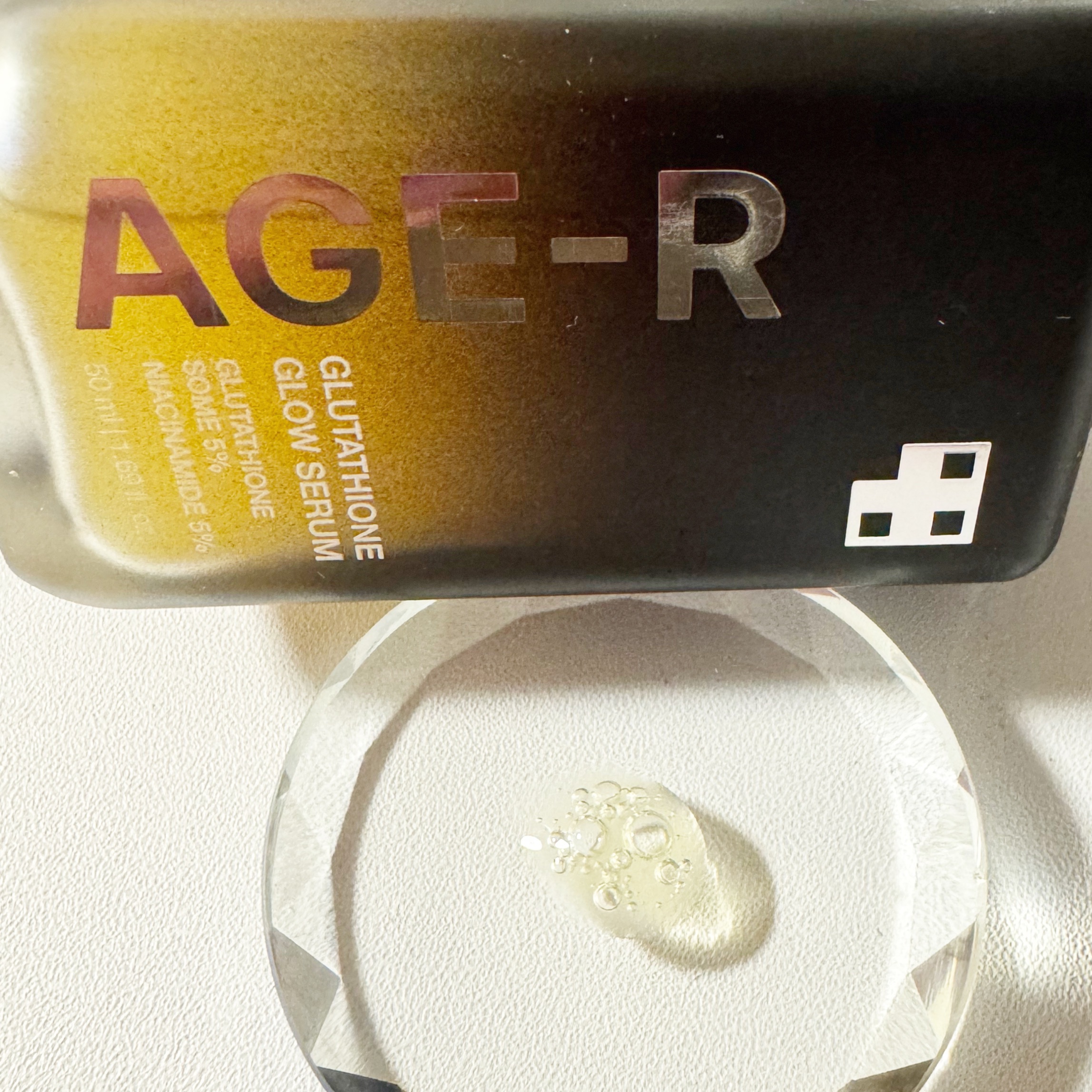 - 高純度99.4%のグルタチオン*を配合し、ハリツヤ肌に導く美容液です。 肌に馴染みやすいリン脂質製のカプセルにグルタチオン成分*を閉じ込め、肌の角質層までうるおいで満たします。 ☑グルタチオンソーム*:50,000ppm ☑ナイアシンアミド* 5%配合 ☑べたつかずしっとりツヤ肌 ☑美顔器AGE-R スキンブースターショットと一緒に使えます 化粧水などでお肌を整えたあと、適量を取り、お肌のキメに沿ってまんべんなく塗った後、やさしくなじませます。 *保湿成分 ■お肌に異常が生じていないかよく注意してご使用ください。化粧品がお肌に合わないとき即ち次のような場合には、使用を中止してください。そのまま使 用を続けますと、症状を悪化させることがありますので、皮膚科専門医等にご相談されることをおすすめします。また、傷やはれもの、しっしん等の異常が ある部位には、ご使用にならないでください。 (1)使用中、赤味、はれ、かゆみ、刺激、色抜け(白斑等)や黒ずみ等の異常があらわれた場合 (2)使用したお肌に、直射日光があたって上記のような異常があらわれた場合 ■目に入らないようご注意ください。目に入ったときは、こすらずにすぐに洗い流してください。その後、目に異物感など異常が残る場合は、眼科専門医へ ご相談されることをおすすめします。 ■極端に高温又は低温の場所、直射日光のあたる場所には保管しないでください。 ■開封後なるべく早めに使用してください。 ■ご使用後はフタをきちんと閉めてください。 ■乳児、子供の手の届かない所に保管してください。