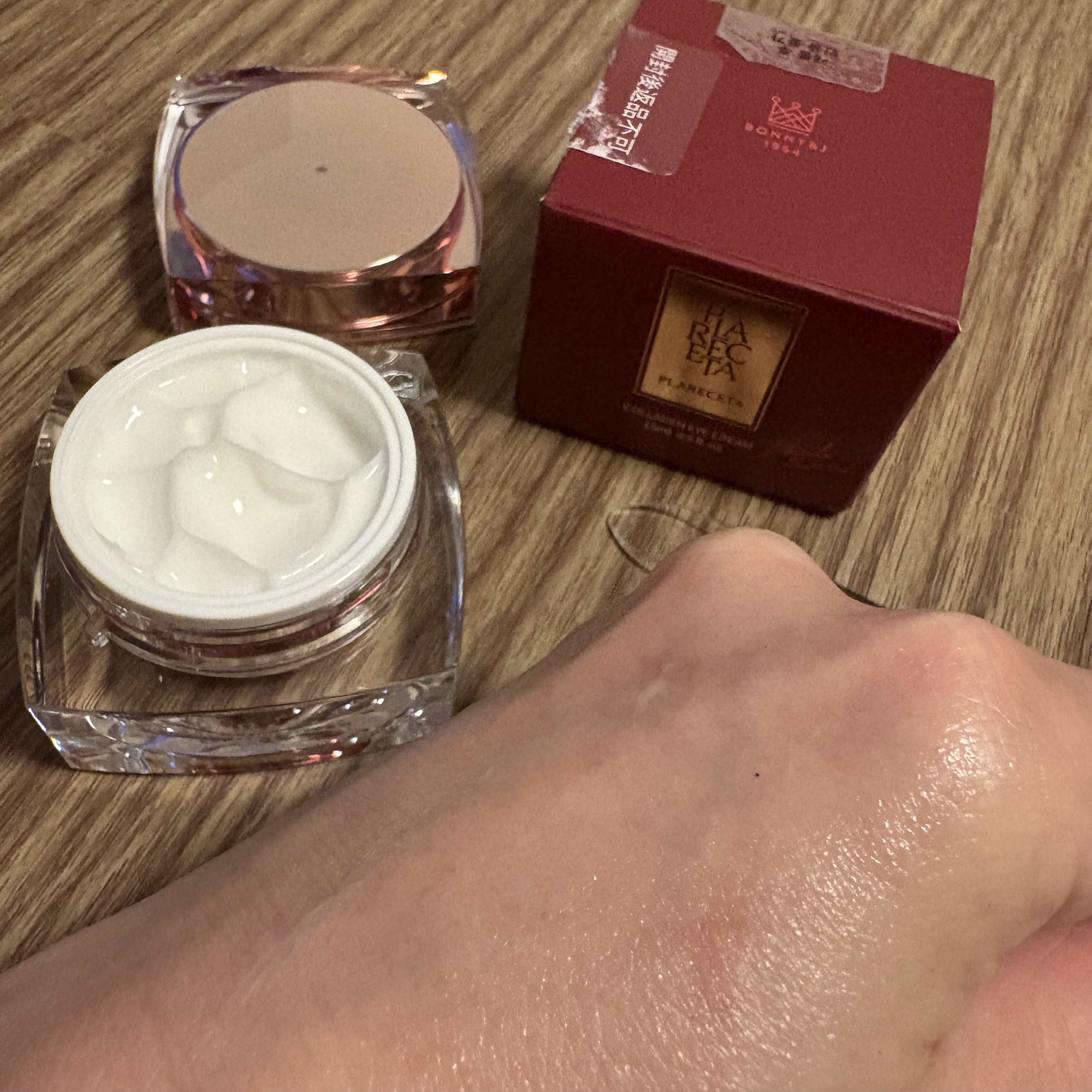 目元のリンクルと目の下のクマ改善用アイクリーム。トーンアップとリンクル改善のダブル機能性化粧品。 プラセンタ(胎盤)エキス4%で栄養補給、フランス産マリンコラーゲンエキス2%配合でハリのある肌へと導いてくれそうです。 柔らかく、伸びの良いテクスチャー、うるおいベールで包まれ、これでピーンとハリのある肌を目指したい。