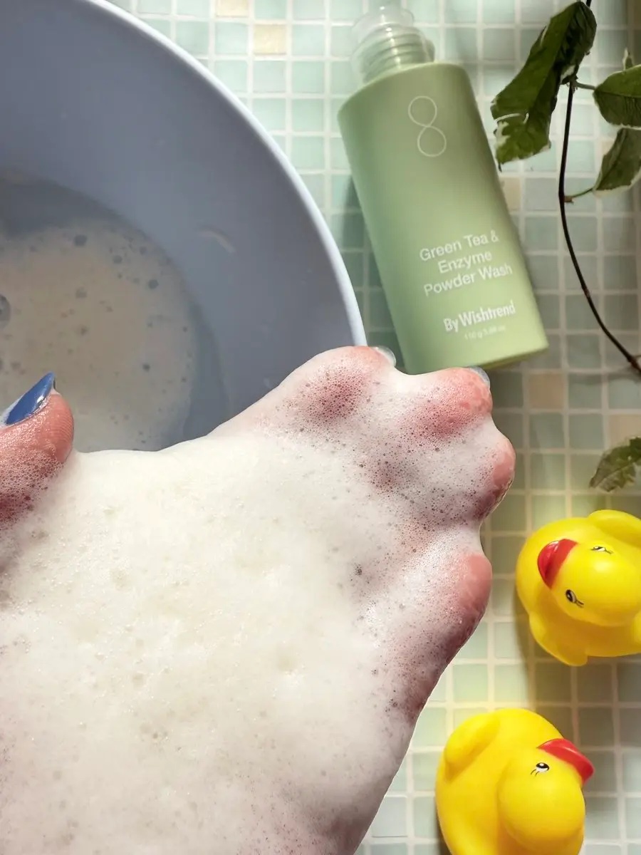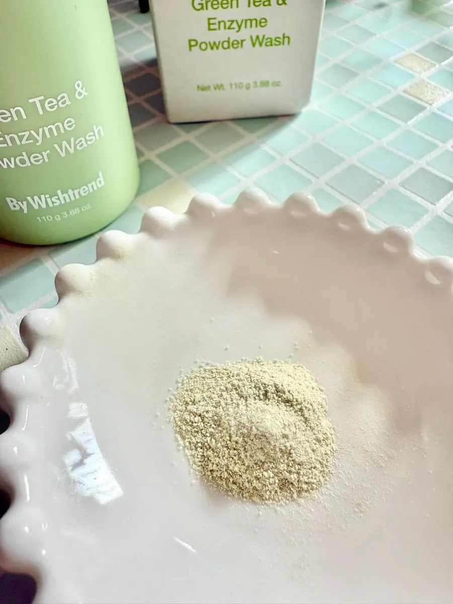 緑茶パウダー、パパイン酵素配合のパウダーウォッシュ🍃🫧 粒子の細かいパウダーで水を加えるとしゅわしゅわ軽い泡ができます😶🌫️ 洗い上がりはすっきりさっぱり〜〜〜! すべすべの肌触りに🤲 ほのかに香る緑茶の香りがとっても良い香り🍵𓈒𓏸