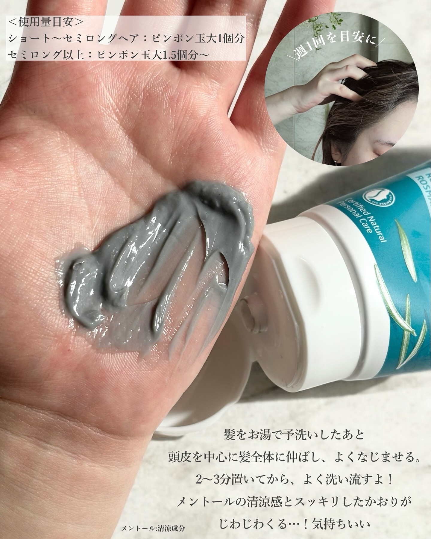 週1回でOK時短なスカルプクレンジング✧˙⁎⋆ ローズマリー スカルプクレンジング 3in1ヘッドスパクレンジング シャンプーやコンディショナーを使用する必要がないのでなんとこれ一本でトリートメントまで完結するからすっごく時短😭✨ 清涼成分としてメントールを配合しているためスーッとした使用感だった🙆