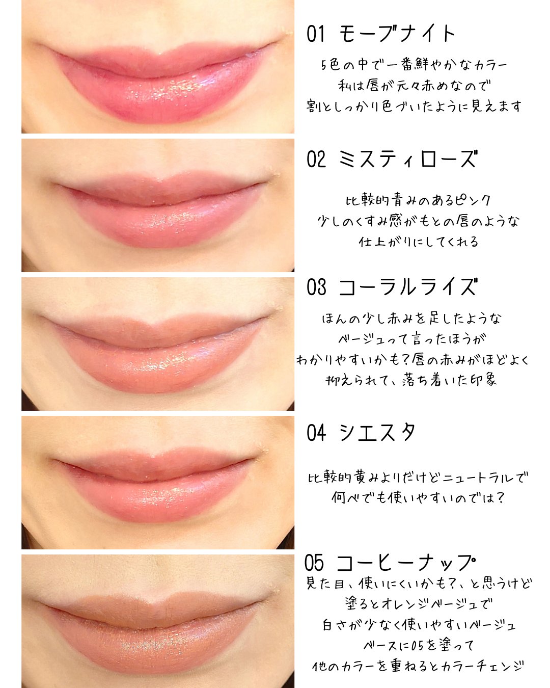 - 淡く儚いカラーで唇を染めるように潤いを与えてくれるツヤ感を与えてくれるリップ。 植物性のオイルを70%配合し、さらにヒアルロン酸やホーリーバジルといったスキンケア成分がたっぷり入っているので、唇を潤わせながら、ほのかに上品な唇を表現します。 肌の温度で溶けて浸透し、人工的な色づきではなく、透明感のある唇を作ります。