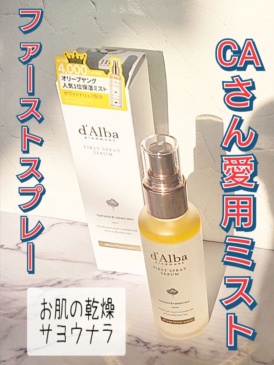ダルバの大人気スプレー イタリア産ホワイトトリュフ*と植物性オイルが入っているよ。 ふわっと香水みたいないい香りの霧のような細かいミストが人気だよね。 乾燥肌だけどしっかり保湿されるところ気に入ってるよ。