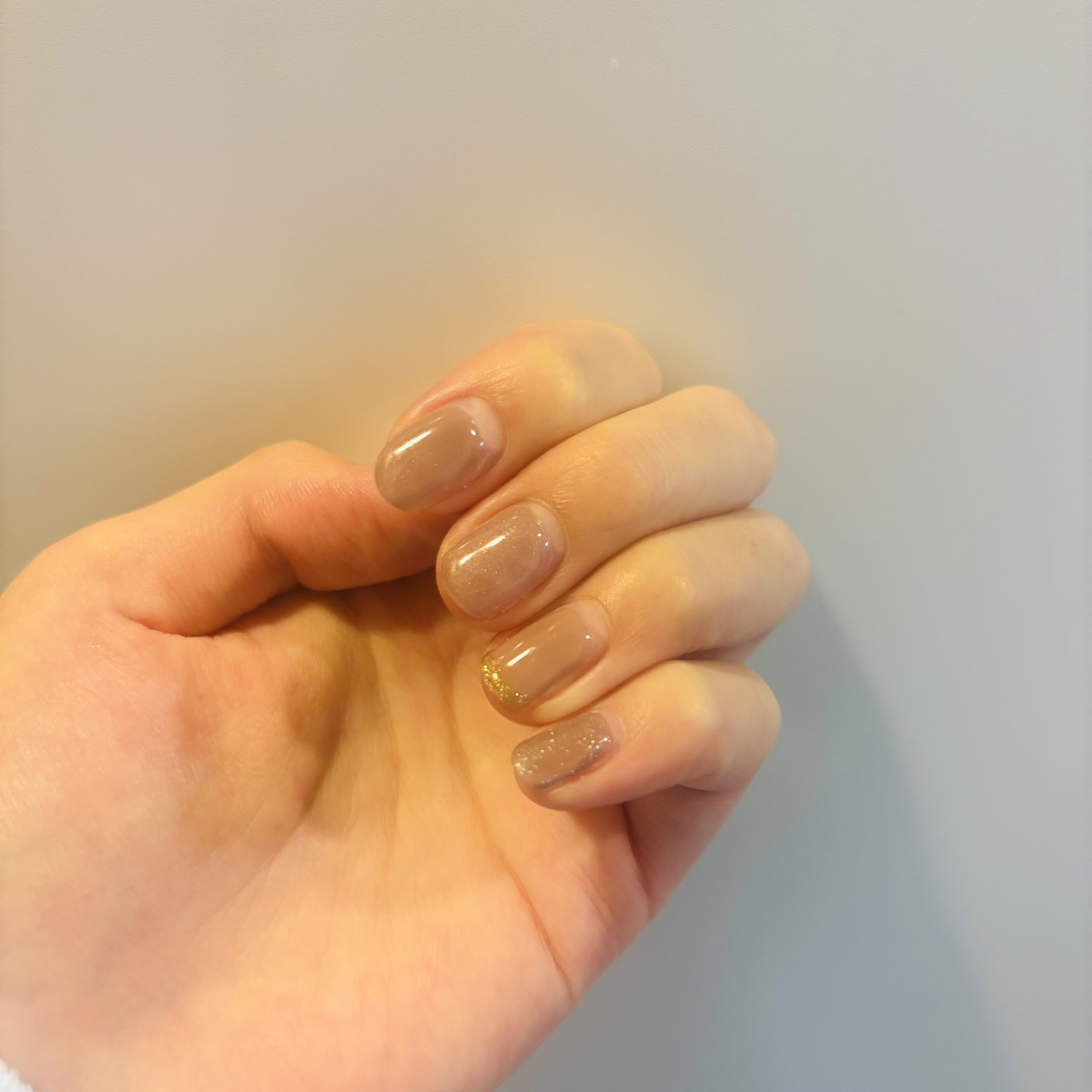 新しく買ったニットにあわせたくて、ブルー系のネイルにしてみました。グレー味のある水色だったので、白やベージュの上から重ねてもいいかなと思いました! 爪の先端に先にベースコート →ピールオフベース →ベースコート+アクリルパウダー →ベースコート →カラー(2度塗り) →トップコートの手順で塗りましたが、良く使う指は1週間半ほどで浮いたり剥がれたりしました🥲 まぁでも塗り直すときにデザイン少し変えて楽しめてるので🙆♀️