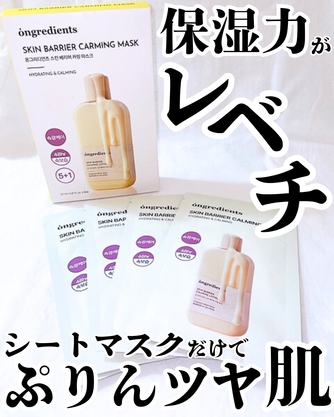 ツボクサエキス配合で刺激をうけた肌を落ち着かせる🌿 オングリディエンツのベストセラー乳液を1枚に込めた高保湿シートマスク 乳液と同じ濃密なエッセンスたっぷりのシートが、顔にぴったり密着 マイルドな使用感だから、肌荒れ時にも使いやすいのもありがたい 保湿力があって、たっぷり水分補給できてる感じがする 乾燥肌に嬉しい使用感です🙆