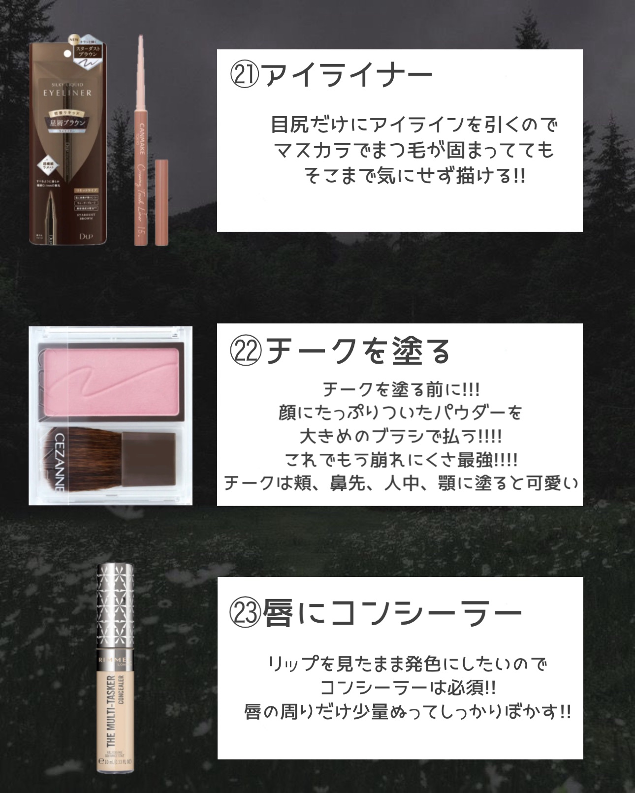 まつ毛の束感の作り方⤵︎⤵︎⤵︎ クマの隠し方と眉毛については後日詳しく紹介します.ᐟ .ᐟ 特にクマの隠し方はめちゃめちゃおすすめの方法なのでビフォーアフターで紹介します!
