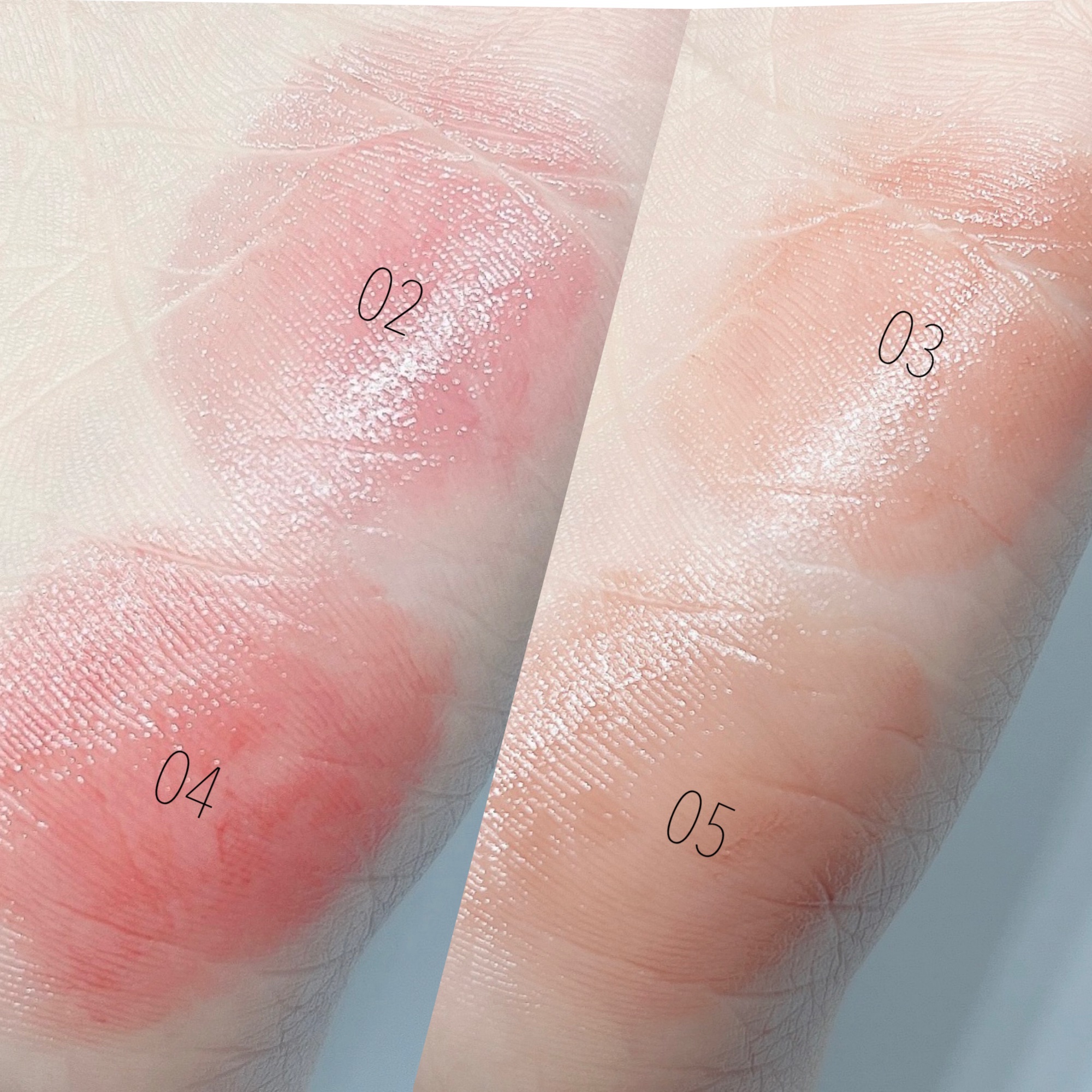ホリデー限定色を見てブルー入ってる!これは絶対欲しいって思って購入しました💗 左上ホワイト▶️かなりギランギランでグリッターのような輝き✨アイシャドウや目頭に使おうかなぁ😆 右下ブルー▶️ブルーはあまり発色せずピンクブルーホワイトの偏光ラメが主役な感じ🩵