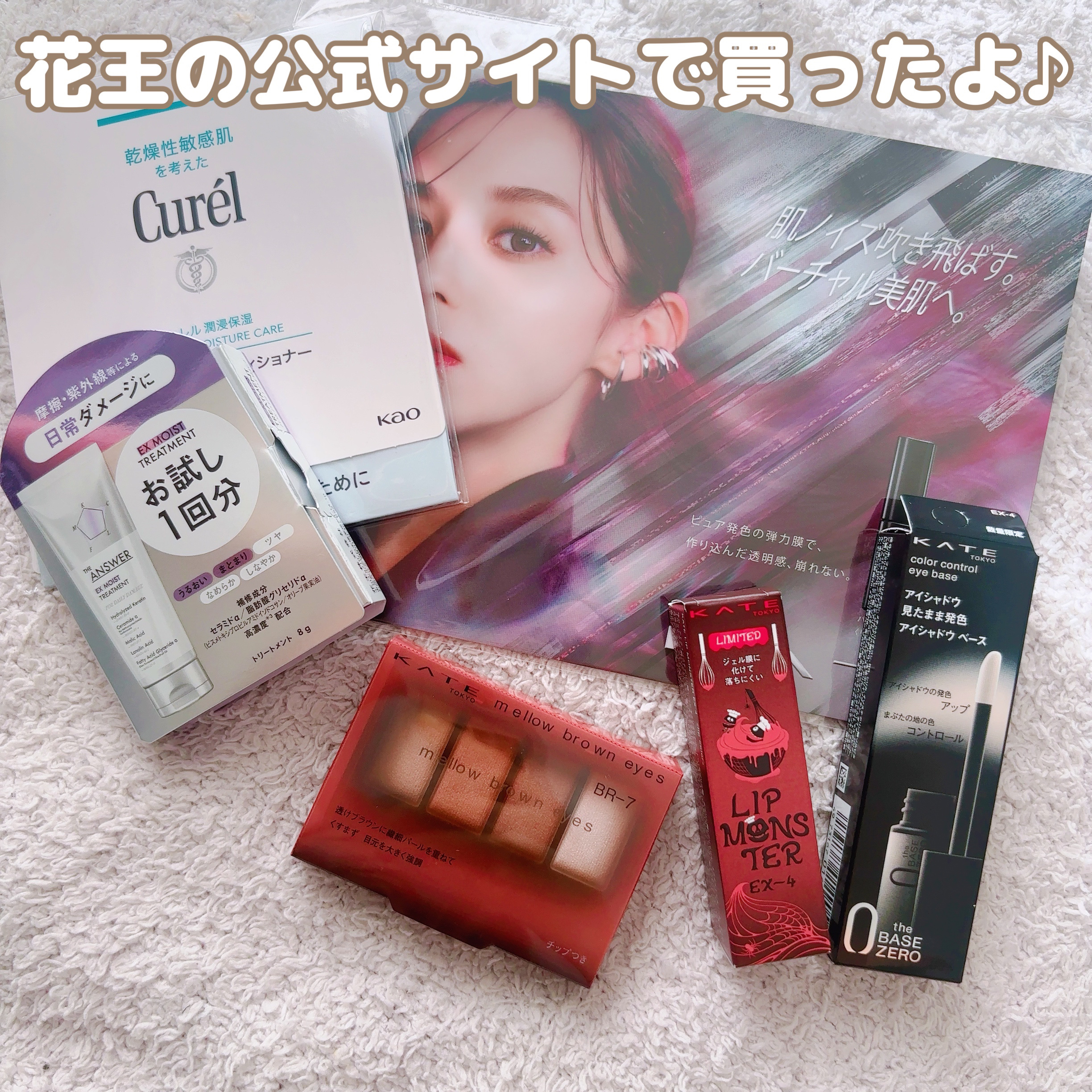 リップモンスターの落ちにくさはそのままに トレンドの「盛れるベージュ系カラー」らしい✨ 高発色なのに肌馴染みの良い透け発色と艶めくような繊細ラメで目元が重たくならず KATE独自のスノースキンフィット技術で、高補整(毛穴&色ムラ・くすみをカバー)することで白光トーンアップ*してくれるよ😉