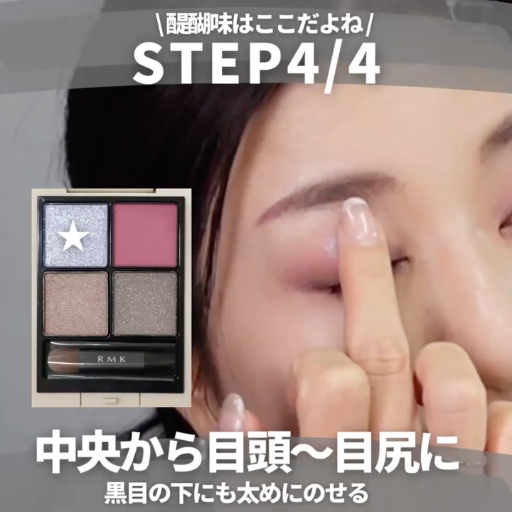 - 微差までこだわりぬいた色と質感のニューエッセンシャルパレット。 重ねるごとに深みを増し、 さまざまな質感やきらめきが混ざりあってつくり出すのは まるでワンカラーのように美しい、 やわらかくモダンなスモーキーアイ。 RMK新質感のライトシャイニーを含む、シャイニー、シマー、 パールシマー、マットのきらめきやツヤを放つ質感と色は、 それぞれが主役級でありながら4色すべてを重ねても濁らず、 奥ゆきを生みながらもダークにならない設計を追求しました。 白膜感や厚みの出にくい処方だから、 肌の色をいかしてクリアに発色。 透明感とツヤのあるパウダーが、 まぶたにやわらかくのび広がり、しっとりと肌と一体化。 肌になじみながらも主張する奥ゆきと透明感が目もとを彩り、 まとう人のパーソナリティをよりいっそう引き立てます。