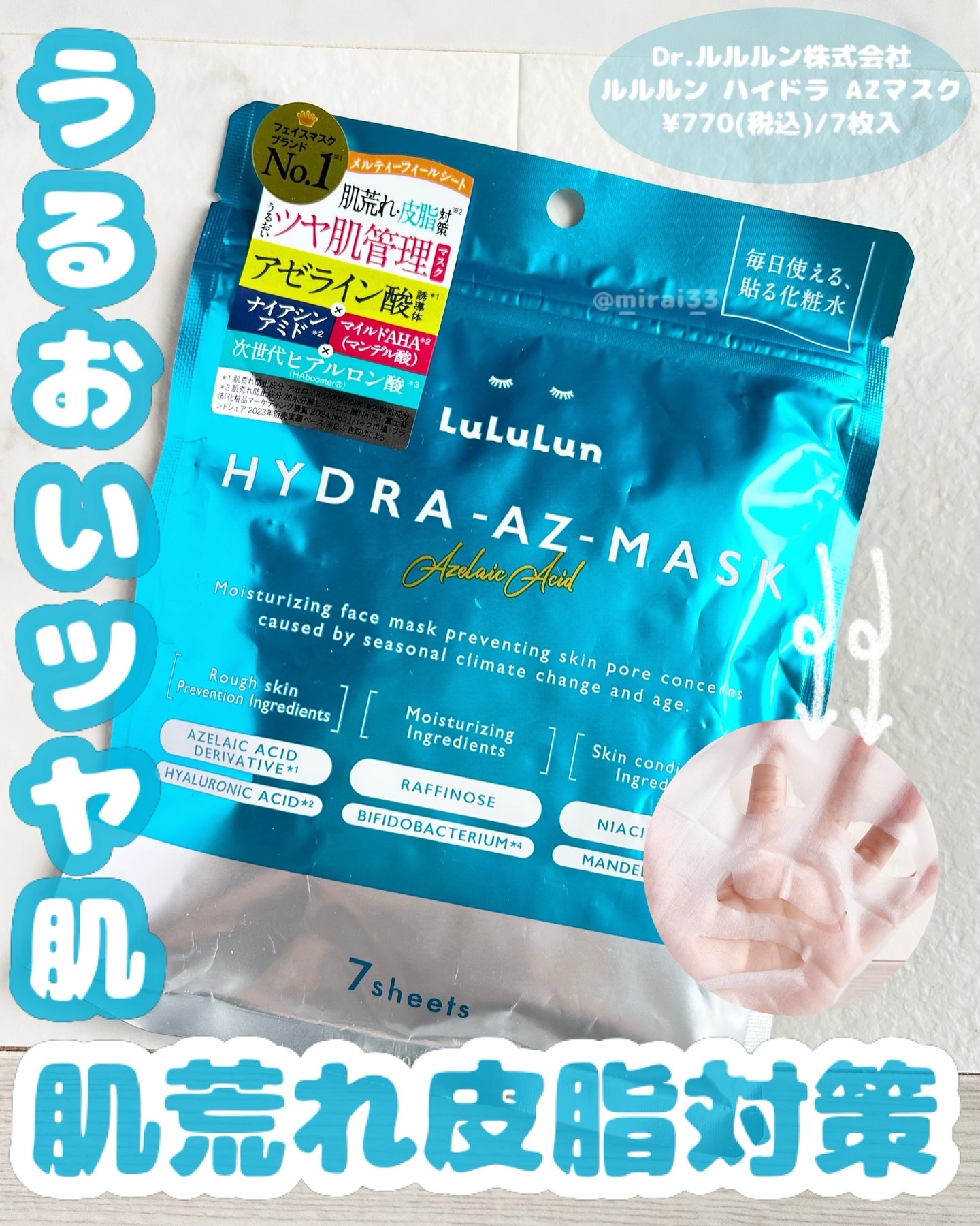 Dr.ルルルン株式会社様に商品を提供して頂きました💎✦ルルルンハイドラAZマスク✦Dr.ルルルン株式会社【ルルルンハイドラAZマスク】\\うるおいツヤ肌管理マスク//・肌荒れ防止成分・低刺激処方大人気ルルルンのマスク🫶...