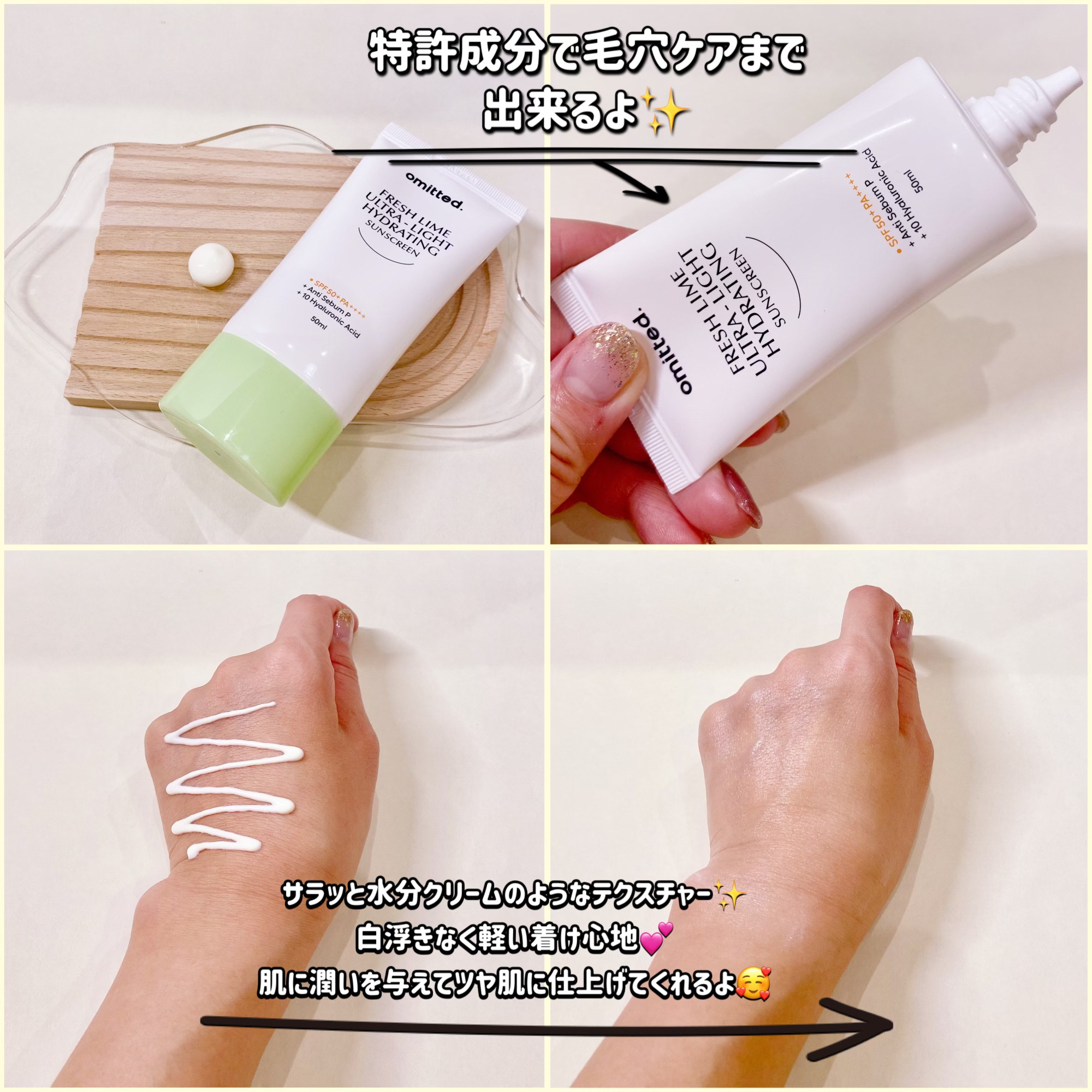 SPF50+PA++++なのに軽いつけ心地で水分クリームみたいな柔らかいテクスチャー 嬉しいポイントは紫外線遮断はもちろん特許成分で毛穴ケアまで一度にできちゃう2イン1なんです 10層のヒアルロン酸が紫外線から刺激を受けた肌にしっとりと水分チャージ