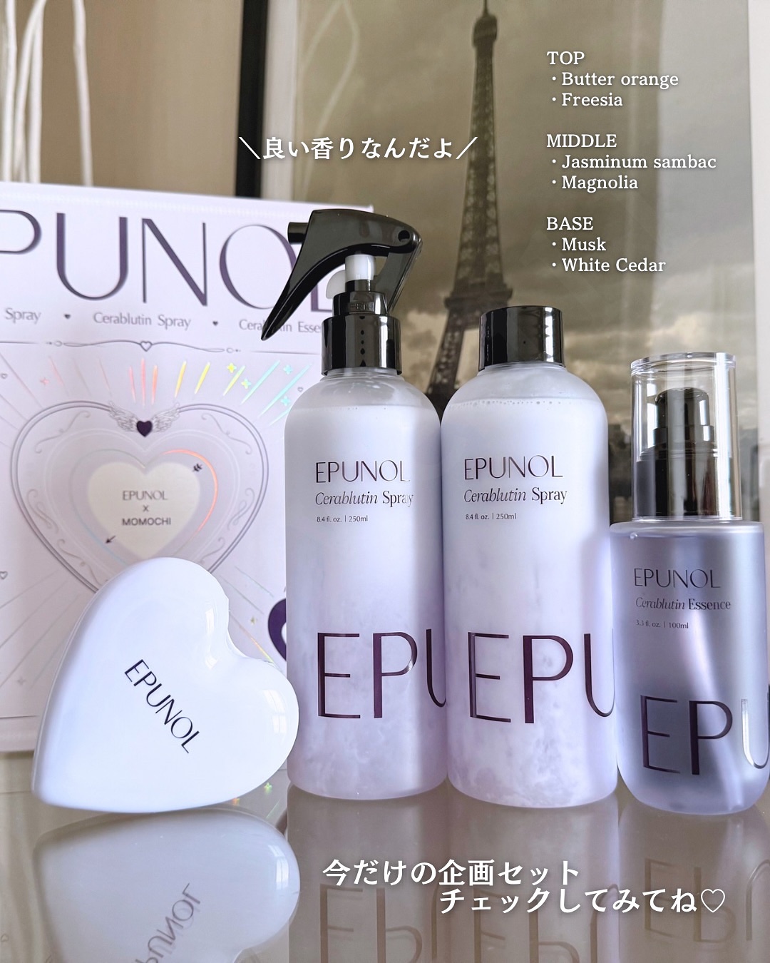 ヘアアイロンの熱から髪を保護するセラブルーチンスプレー!水分層と栄養クリームの二重構造になっていて、べたつかないヘアトリートメント✨ 最大230℃の熱保護効果で熱を加えれば加えるほど栄養成分が吸収される原理を利用したヘアトリートメントスプレー。 EPUNOL独自成分のセラブルーチン含有のダメージヘア専用高栄養淡白質エッセンスでサロン帰りのような髪に!