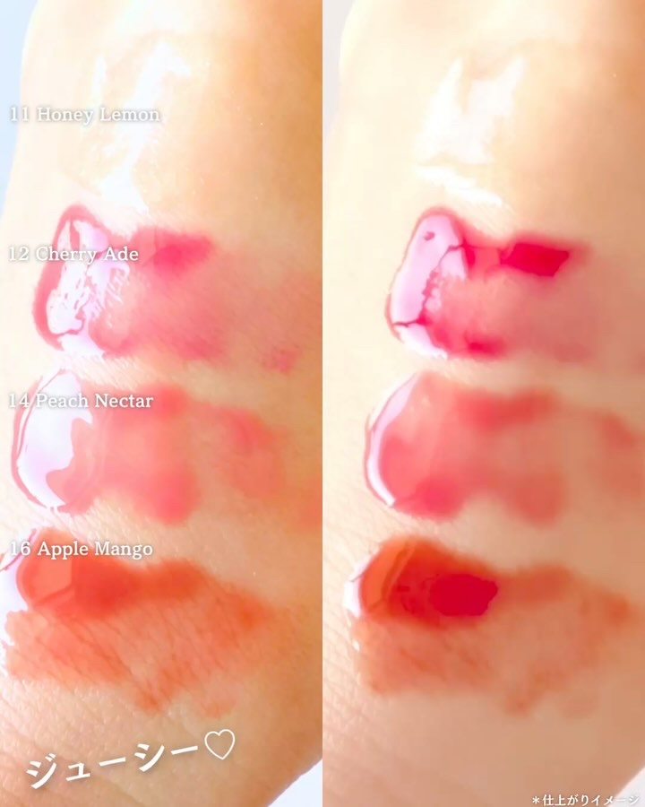 白浮きなし!透明感たっぷりのベリーっぽ発色が可愛すぎる🫐🍓♡ オイル保湿膜で角質のないぷるぷるリップに導く💋 11は、強めプランパーで唇弱い民の私からするとまあまあヒーヒーします😂🔥 ガラス玉のようにちゅるんとした光沢感でぷっくりボリュームリップが叶っちゃう🥺