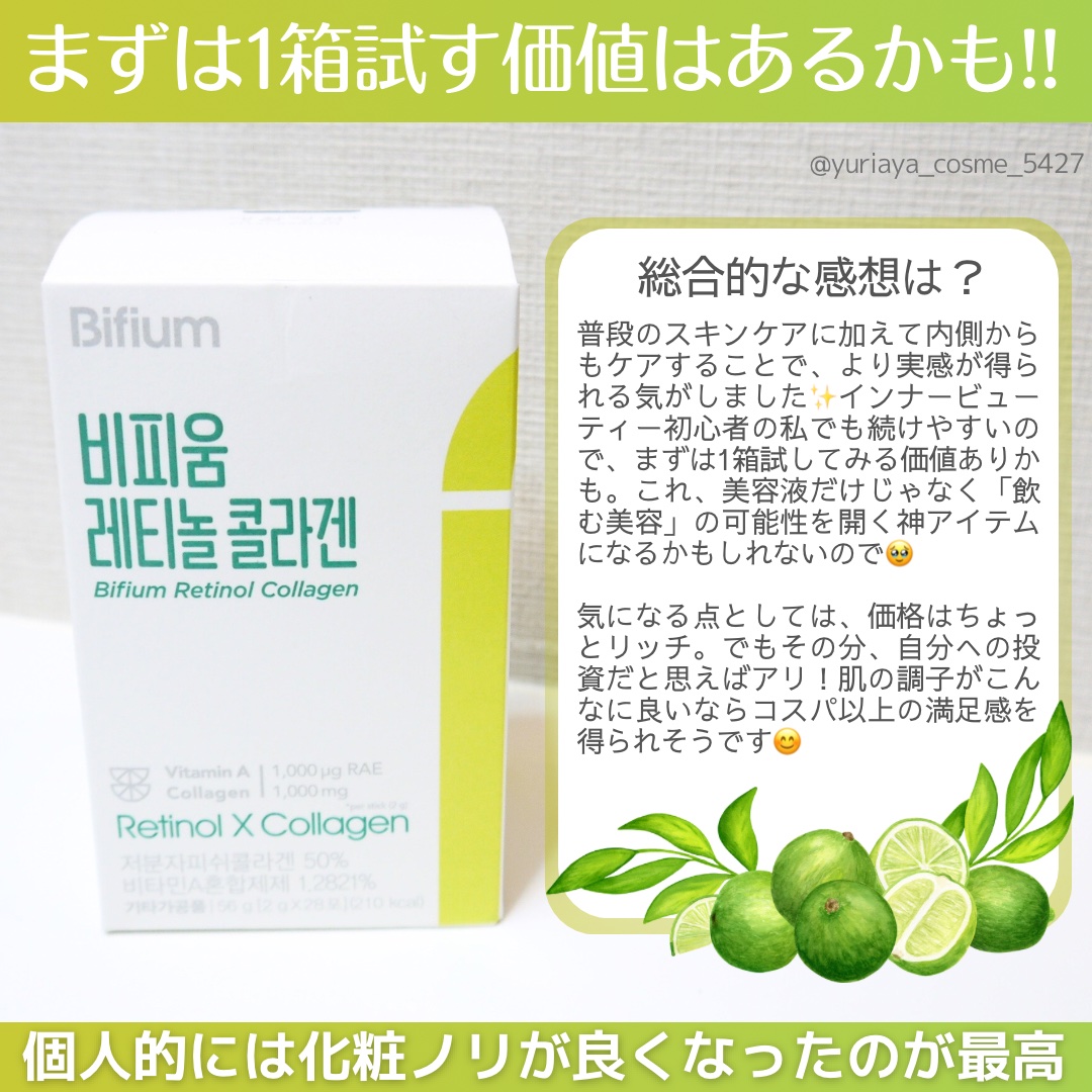 飲みやすいパウダータイプのレチノール✨ レチノール1000μg+コラーゲン1000㎎配合で肌の再生をサポートや毛穴ケア&ハリツヤアップに働きかけてくれるのが特徴です🌿 爽やかな青みかんライム味でほんのり柑橘の酸味があってさっぱりした味で飲みやすいと感じました💗 美味しくて続けやすいのが嬉しい🌸 スキンケアはもちろん、インナーケアも大事だからサプリメントでしっかり補っていきたい😊