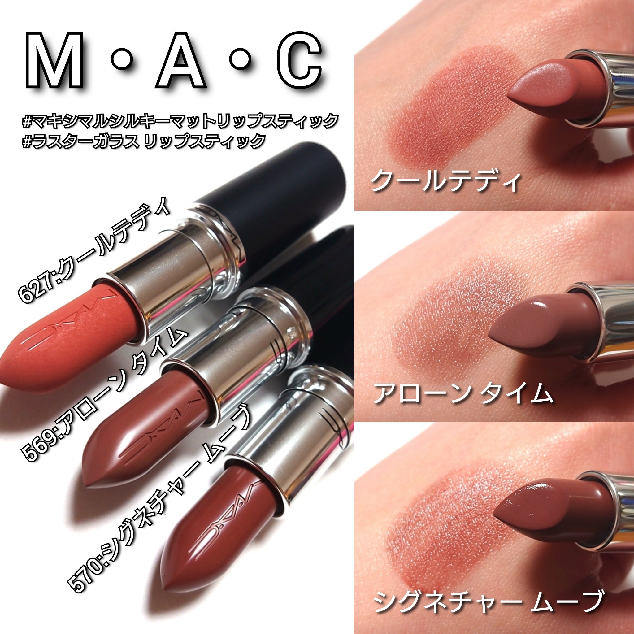 全130色のヌーディーカラーで絶妙な色の違い・質感で自分のなりたいがきっと見つかるはず🧸🎀 ͗ ͗ 🌟ラスターガラス リップスティック アローン タイム M•A•Cアーティストも大注目のカラー! 透け感のあるブラウンが唇の血色感と絶妙にマッチして 🌟 マキシマル シルキー マット リップスティック クールテディ クールなベージュにほんのりピンクの血色感がプラスされたカラー🫧