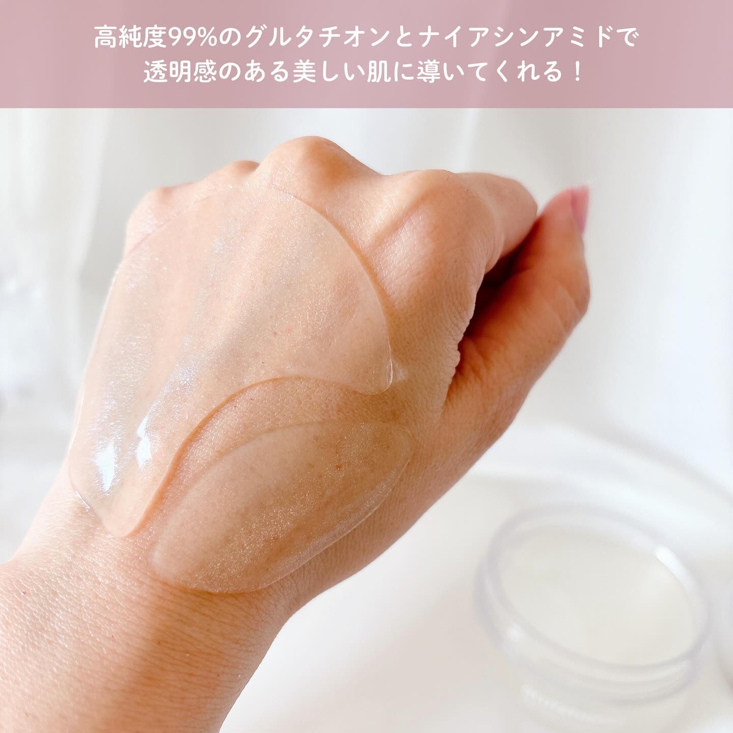 高純度99%のグルタチオンとナイアシンアミドで目元の乾燥によるくすみを贅沢にケアする部分用パッチ。 ハイドロゲルパッチだからずれにくく、ぴたっと密着されるのが、すごくお気に入り! パッチのキラキラ感は本物のダイヤモンドパウダーによるもの💎