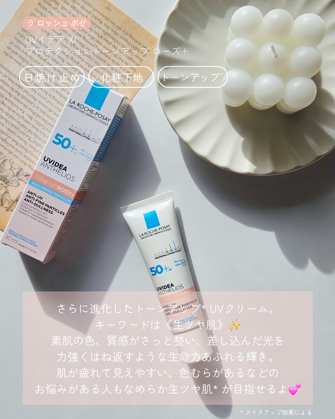 光も、くすみ*1も、紫外線も…ぜ〜んぶはね返す!"生ツヤ肌トーンアップ*2"ってこういうこと*1乾燥による*2メイクアップ効果による♡ラロッシュポゼUVイデアXLプロテクショントーンアップローズ+SPF50+・PA++++無香料・パラベンフリ...