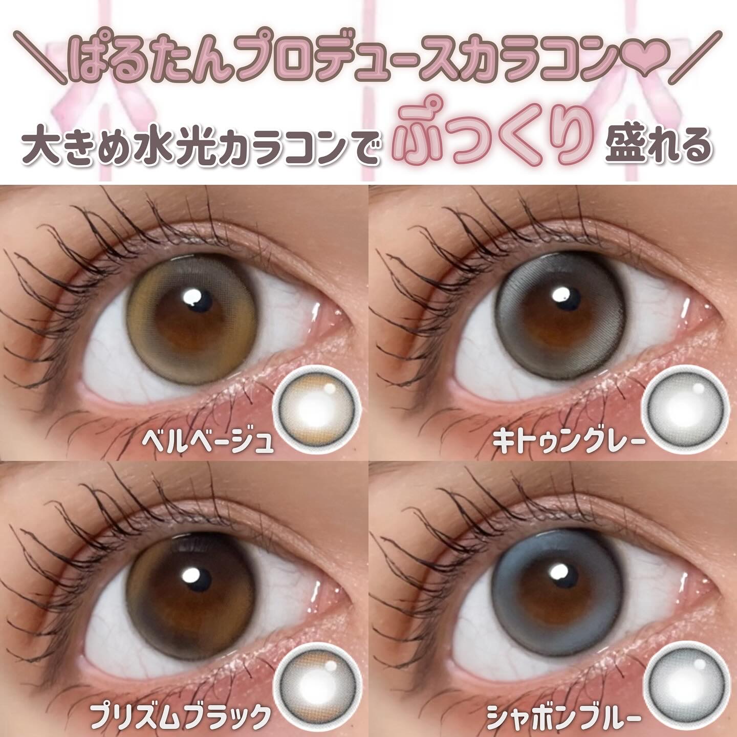 \ぱるたんプロデュース/courage全色まとめ❤︎………………………………□courageベルベージュプリズムブラックキトゥングレーシャボンブルー1day(1箱10枚入り)DIA:14.5mm着色直径:13.7mmBC:8.6mm含水率:5...