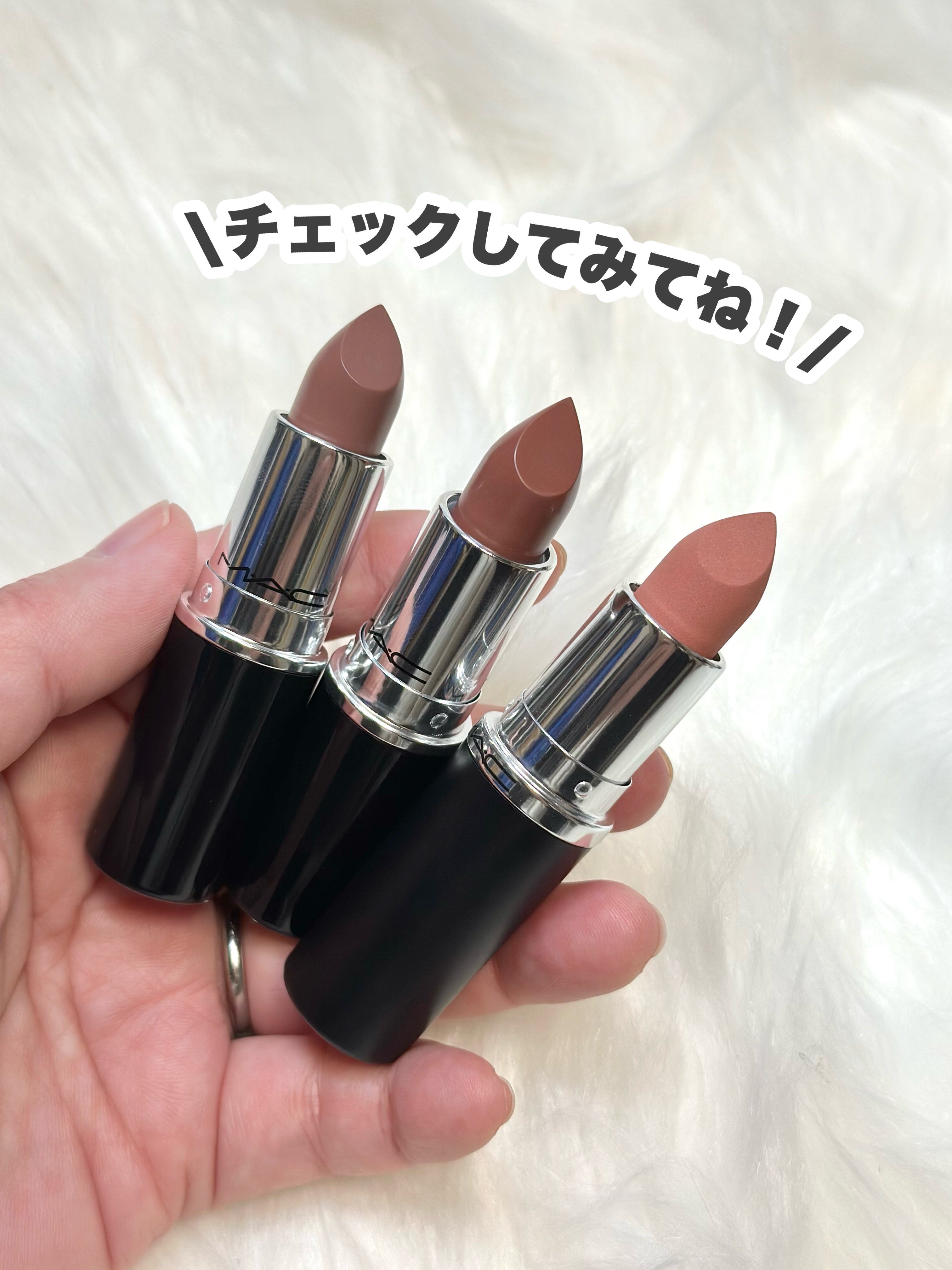 M・A・C史上最大全130色のヌードカラー!! ブラウン・ピンク・レッドを秘めた幅広い色展開で、自分に似合う色が見つかりそう!! マキシマル シルキー マット リップスティックはオイルinマットで、ラスターガラス リップスティックはうるツヤでシアーな質感! 事前予約不要で5分で似合う色選んでもらえるって書いてあったから、行きたいな~