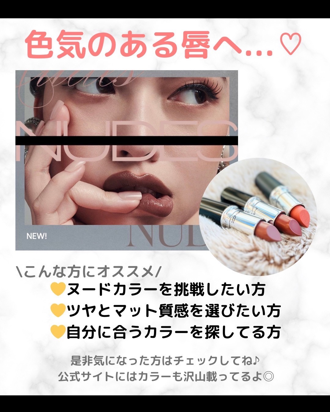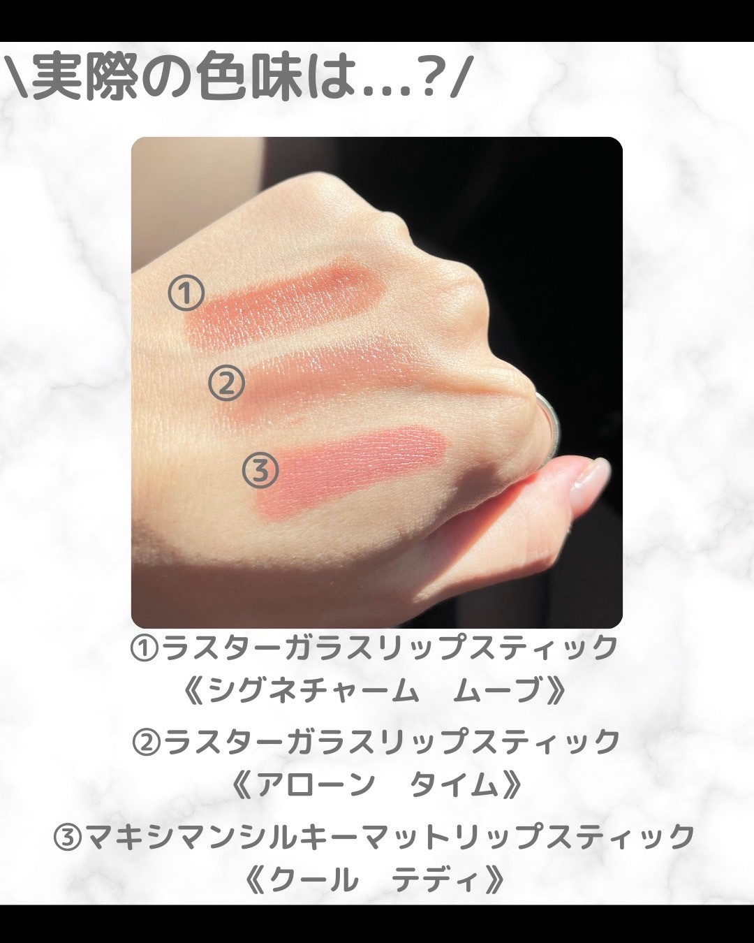 全130色のヌーディーカラーで絶妙な色の違い・質感で自分のなりたいがきっと見つかるはず🧸🎀 ͗ ͗ 🌟ラスターガラス リップスティック アローン タイム M•A•Cアーティストも大注目のカラー! 透け感のあるブラウンが唇の血色感と絶妙にマッチして 🌟 マキシマル シルキー マット リップスティック クールテディ クールなベージュにほんのりピンクの血色感がプラスされたカラー🫧