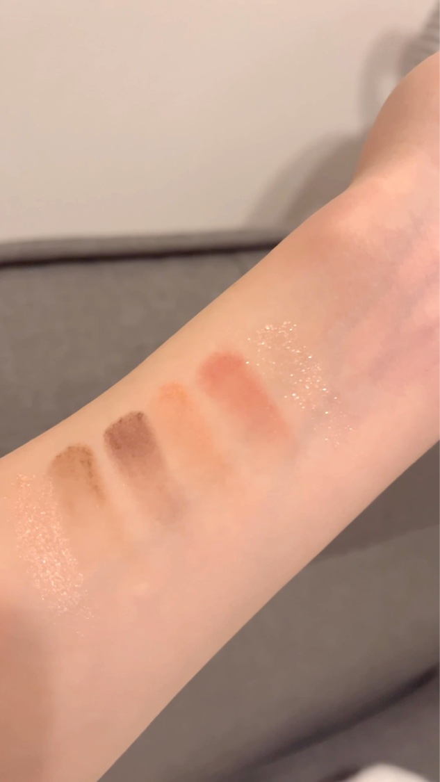 まず色味が本当にタイプ!🤍 白すぎないし、ピンクすぎないし、お仕事でもデートでもどんな場面にもぴったり☺️ ラメ感もすごく綺麗で、控えめなんだけどちゃんと存在感がある✨✨ ナチュラルに盛れるカラーが揃ったアイシャドウパレットってそんなにないから、プチプラでゲットできて嬉しいなぁ〜! 締め色は発色がよくてガッて付いちゃうので 少量ずつ付けるのがポイント!