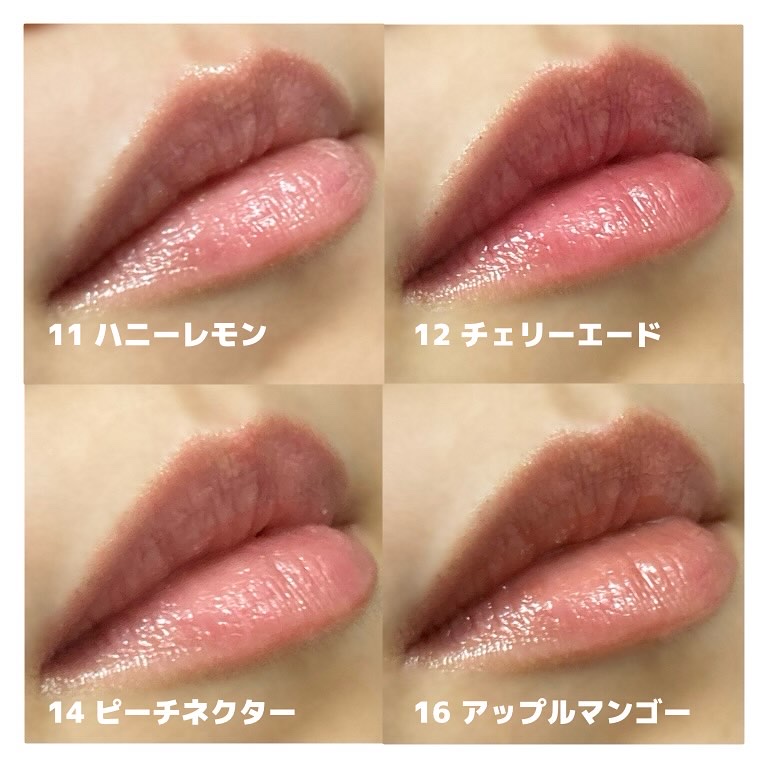 新色が4つもあるんだって🥹💖 11 ハニーレモン 12 チェリーエード 14 ピッチネクタ(3月発売予定の日本限定カラー) 16 アップルマンゴー(3月発売予定の日本限定カラー) コロンとしたパッケージが可愛くて 色もかわいい〜♡ ハニーレモンはキラキラしてて、あとの3色はガラス玉みたいなツヤツヤ感✨✨ プランパーの感じもしっかりあって ぷっくりとした仕上がり💕💕