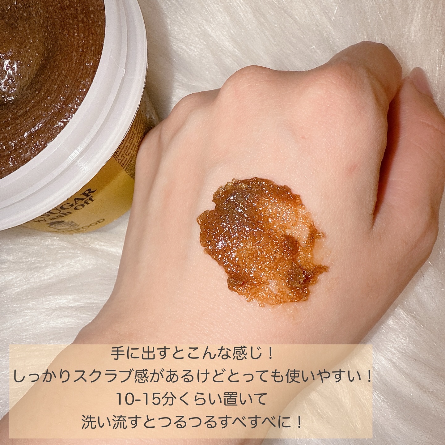 より柔らかくなったブラックシュガー 細かくグラインディングし、エッセンシャルオイルを配合したしっとりマイルドなスクラブ! 古い角質と皮脂で荒れた肌を手軽にケアできるから今やお風呂場の必需品と化してる┏(^o^)┓ コスパ良いし、すべすべ肌がクセになるし手放せない!!
