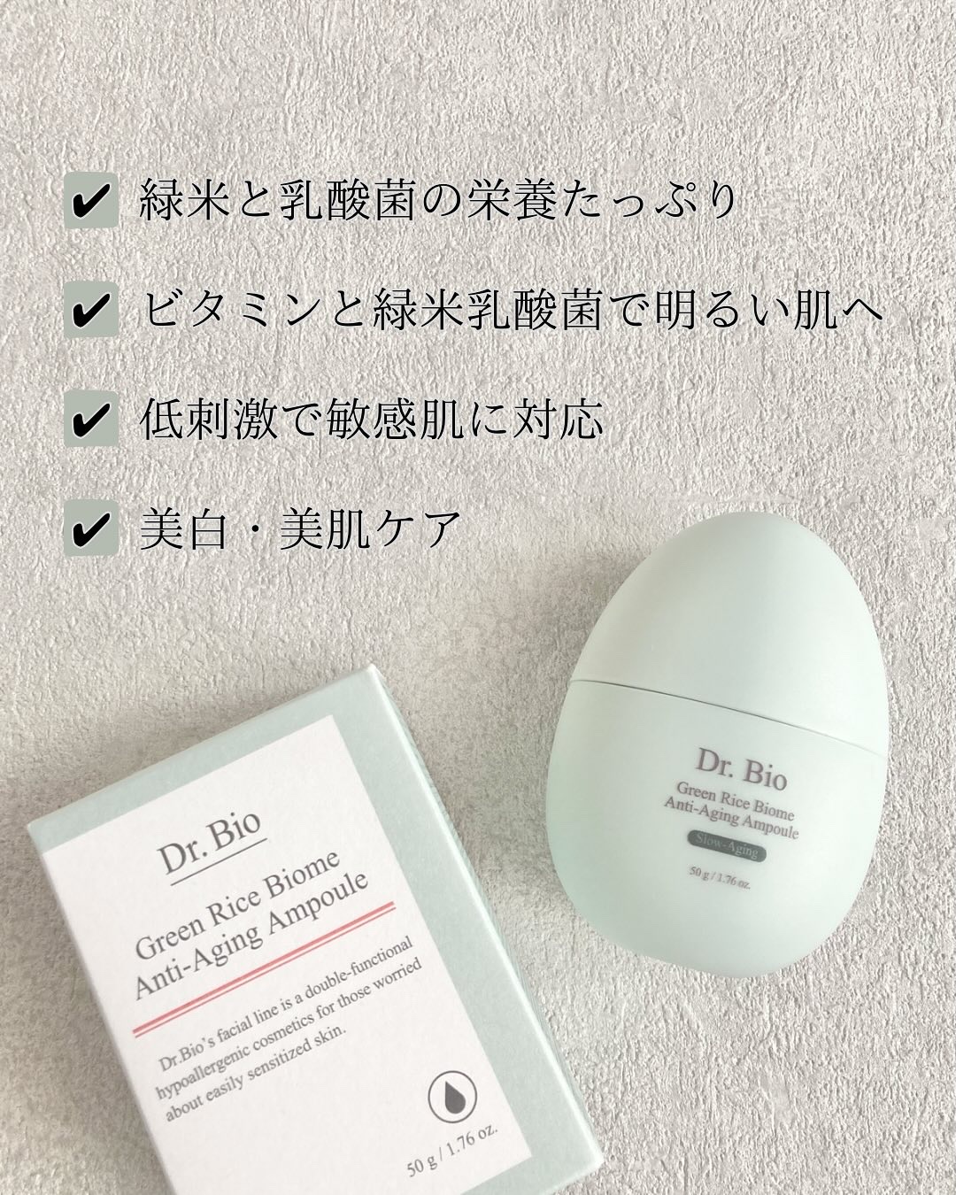 植物由来のこだわり成分で敏感肌もすべすべの澄んだ透明肌へ♡.*・゚ ドクターバイオ グリーンライスバイオームアンチエイジング 緑米は貴重種であり、高栄養価を含有していることから「幻の米」と知られている緑米。 持ち運びしやすい可愛らしいデザイン クリームだけど柔らかいテクスチャーでベタつかずお肌に馴染みます(*^^*)