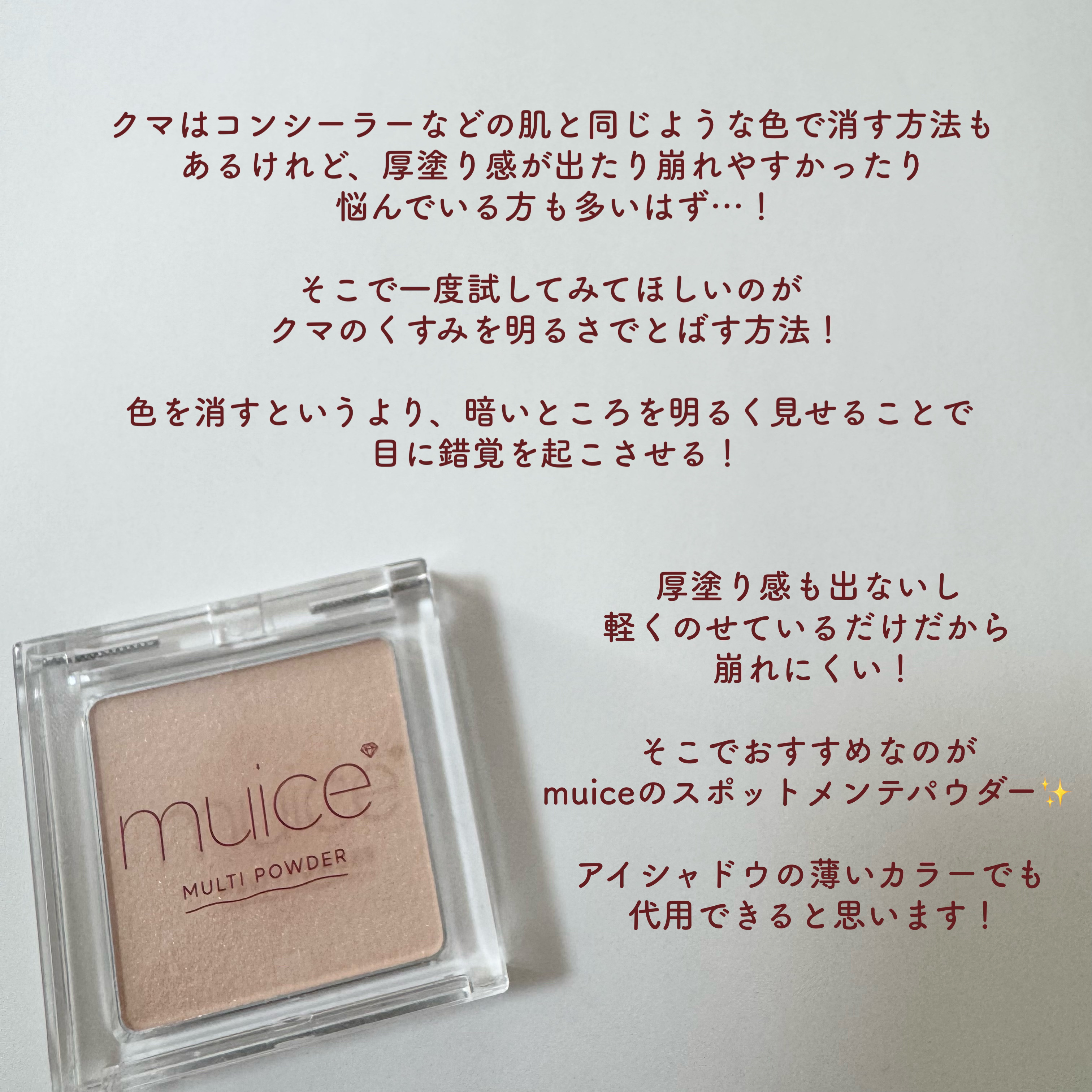 結論、『これは流行るのわかるわ』でした。 ちなみに11/15の公式ECの再販では01が約2分で完売。その後追うように30分ほどで02も完売してました(わたししらべ) 色味や濃度で隠すタイプではなく、ぼかすという表現がぴったりきます。 隠す、ではなくぼかす。これ結構この商品のテーマな気がします。 また超ナチュラルなハイライトとして鼻筋や目の付け根に入れても使えるし、一つ持っておくと何かと便利なスポットメンテパウダーでした。
