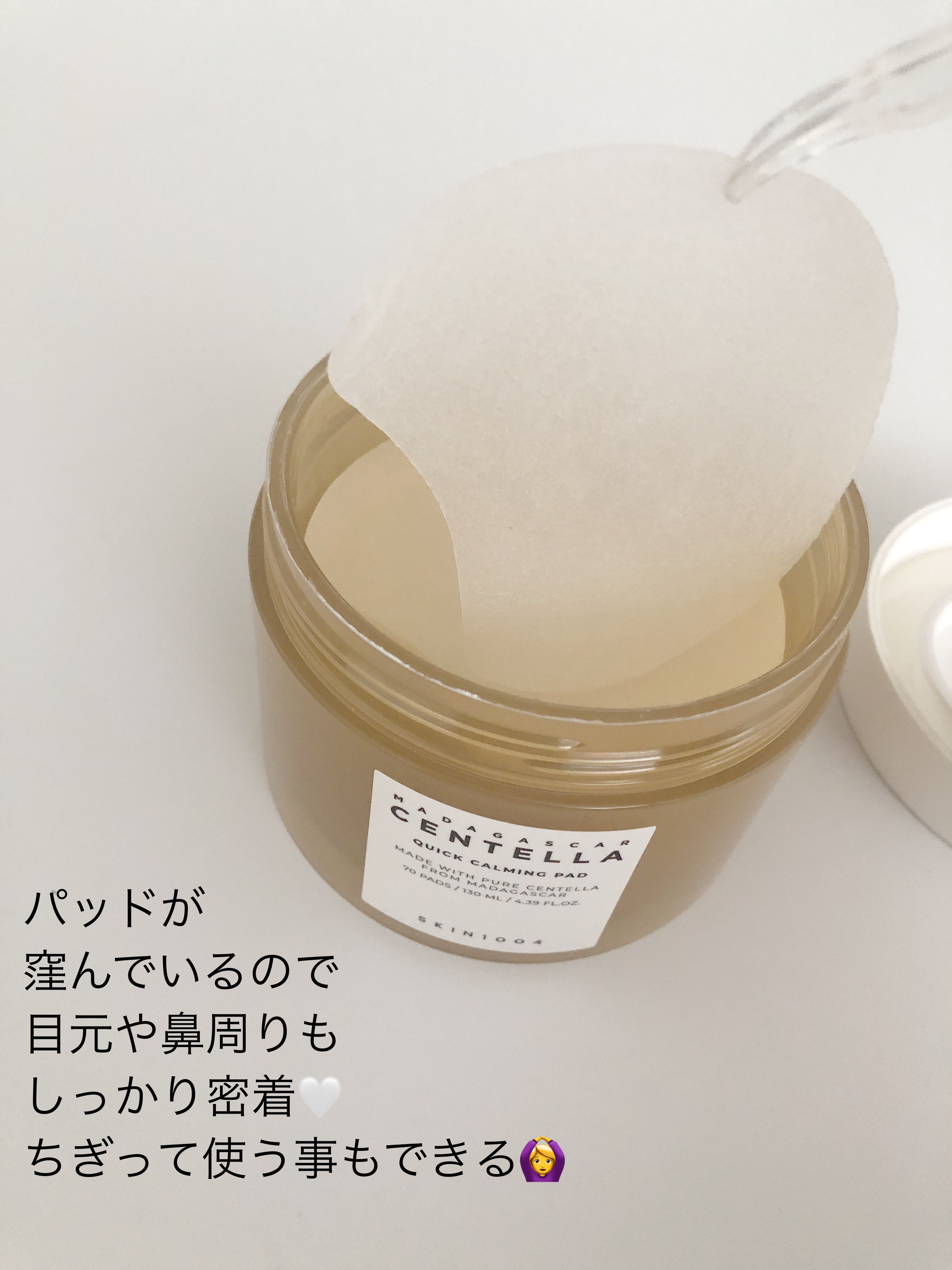 SKIN1004センテラ クイックカーミングパッド刺激を受けた肌を素早く鎮静してくれる、エッセンスたっぷりのじゅわぴたパッド✨目や鼻の周りに隙間なくぴったり密着する大きめパッドが、ダメージを受けた肌を一度で覆いケア。マダガスカル産のツボクサエ...