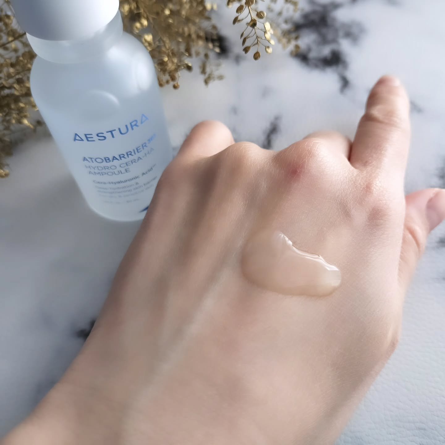 AESTURA独自成分「セラーヒアルロン酸™」を配合していて、たっぷり水分をためこんだ肌に導いてくれますよ。 とろみのあるテクスチャーだけど、アトバリア365のエッセンスよりは軽いテクスチャーです。すっとお肌に馴染んでベタつかないのも魅力的でした。 アトバリア365クリームと一緒に使いたいです♡