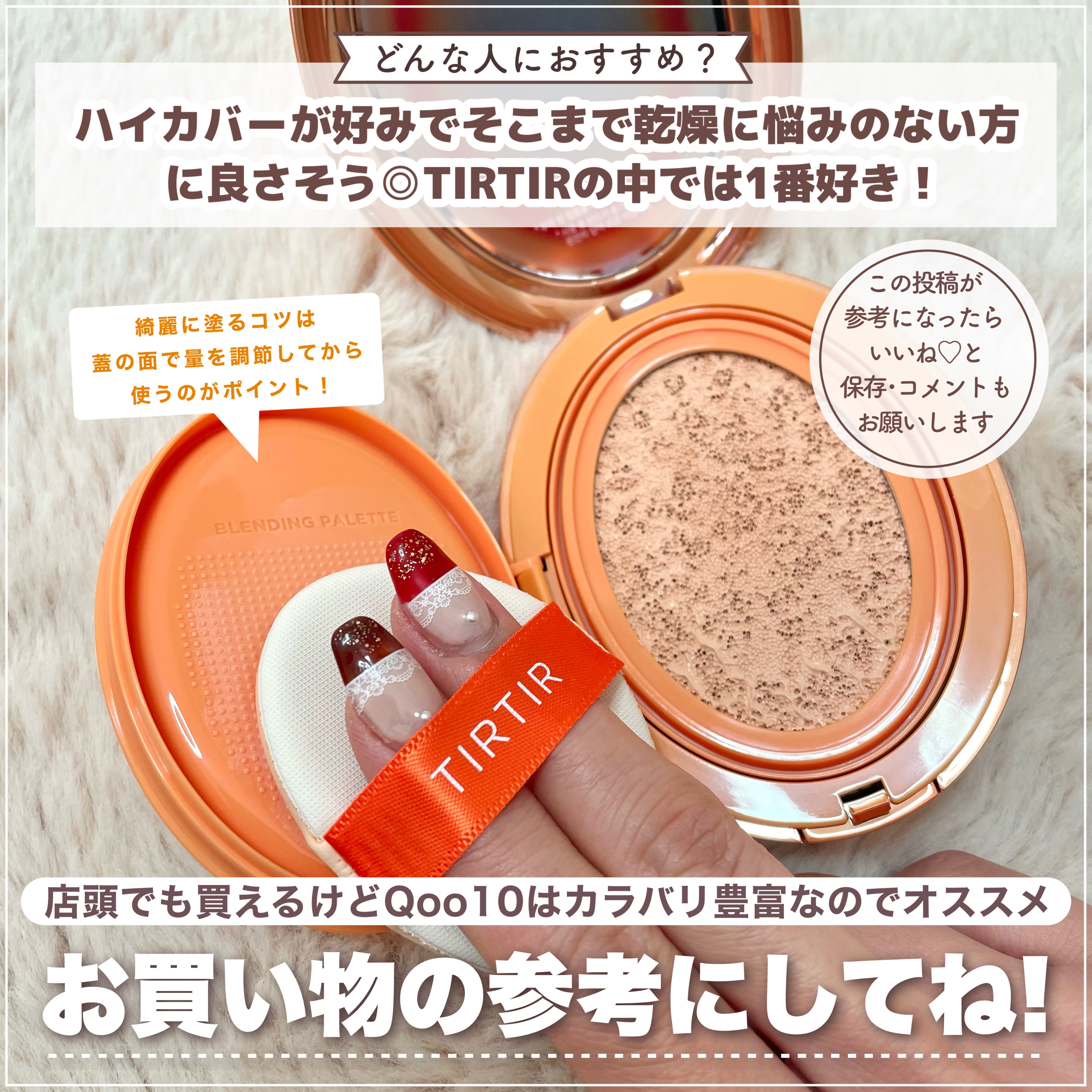 コメント失礼いたします…! りちゃさんのレビューとても好きなので こちらの商品のレビューとても待っていました🙌 ありがとうございます☺️ カラバリの多さとカバー力は魅力ですが 厚塗り感はやはり、出てしまうのですね TIRTIRのクッションファンデを購入する際は このオレンジを購入したいと思います🙇♀️
