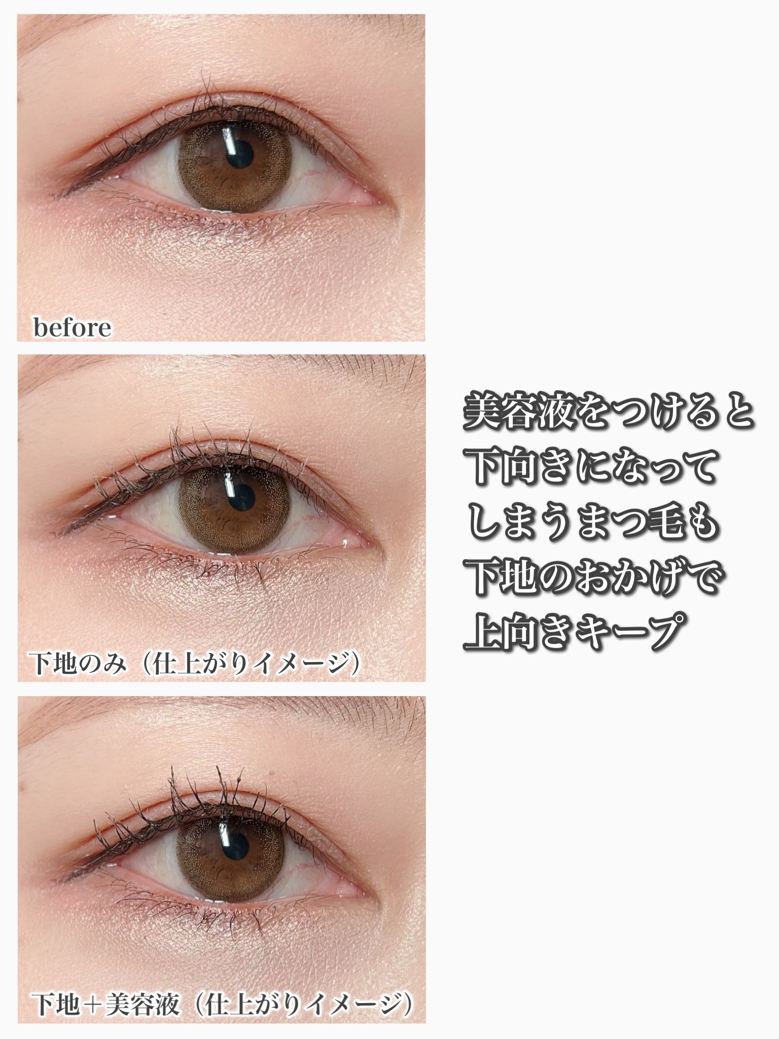 - メイクしたてのカールが長時間続く!まるでまつげパーマしたみたい。#うそつき下地 しっかりカールキープで夜までクリアに上向きキープ! 白く残らずまつげになじむクリアカラー。 繊細セパレート仕上げ。 ウォータープルーフ。