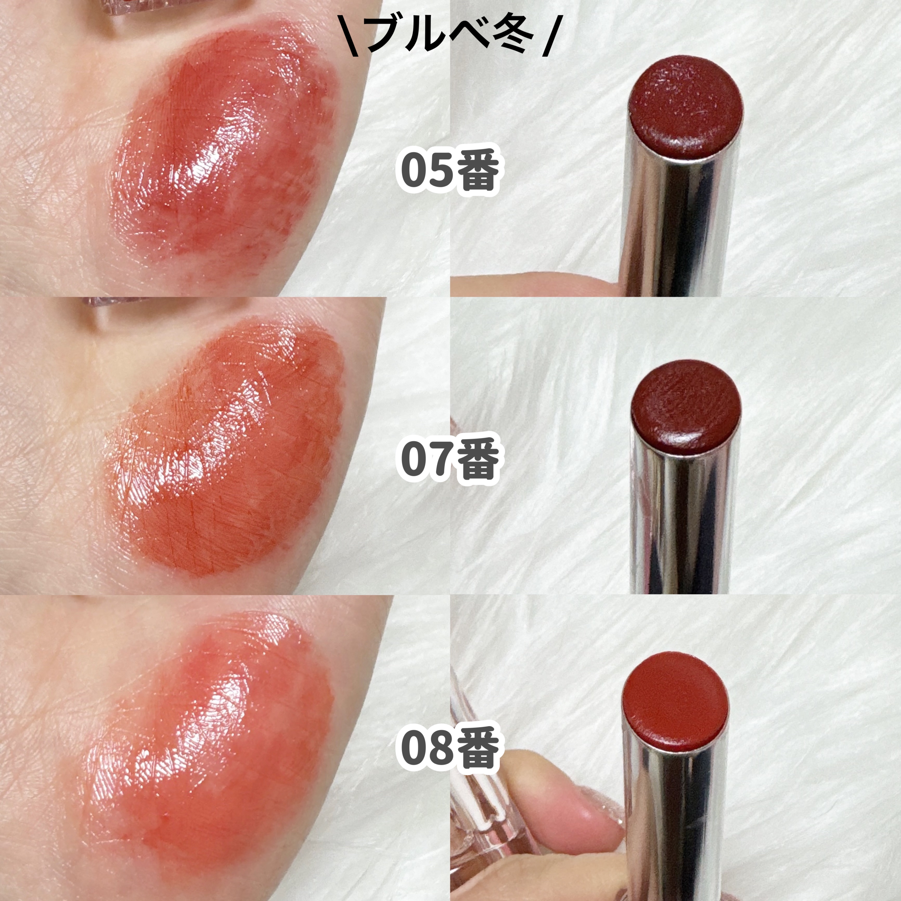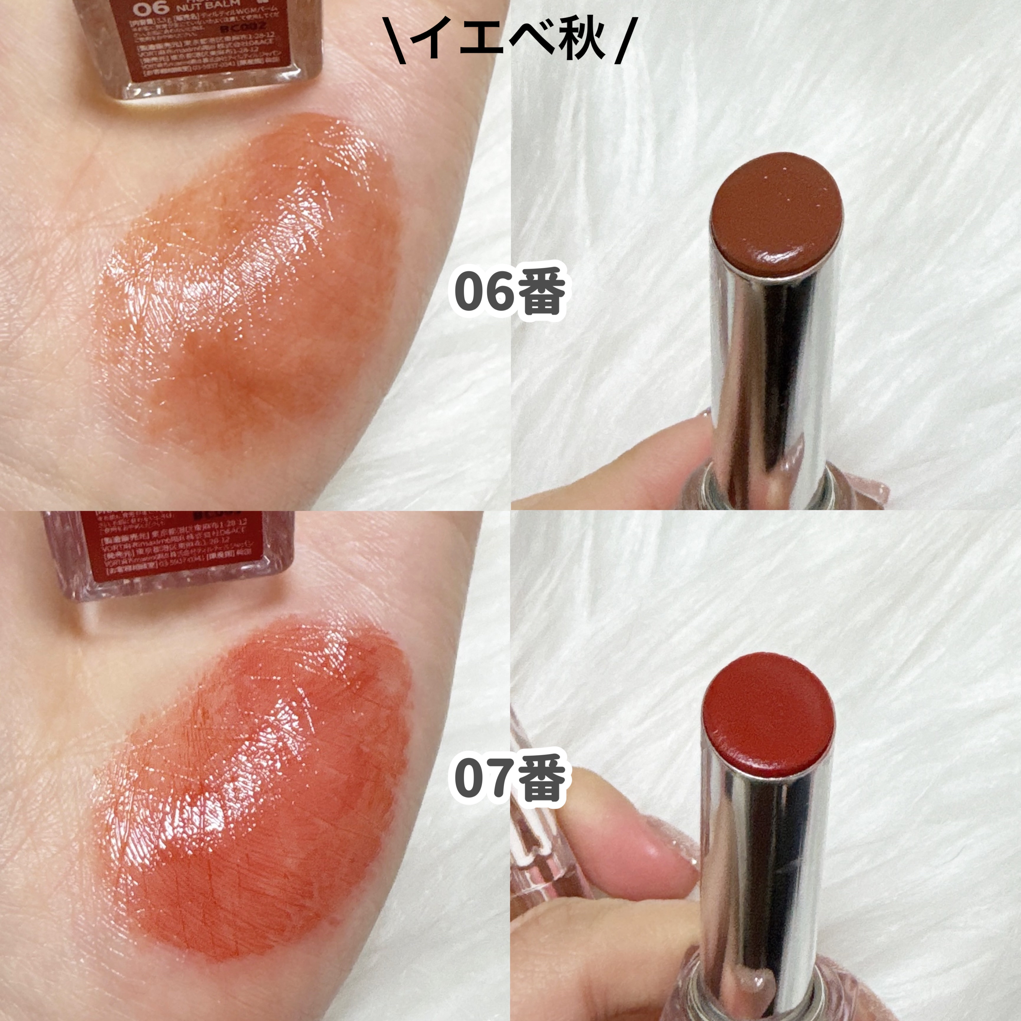 ティントは、透明感のある発色で、カラーとみずみずしい質感が持続してくれるティント!塗るときにムラになりにくいのも良かった💡 バームは、ナチュラルな発色で、ツヤっとした光沢感がきれい✨ 保湿感がほしいときに使うのがおすすめ!