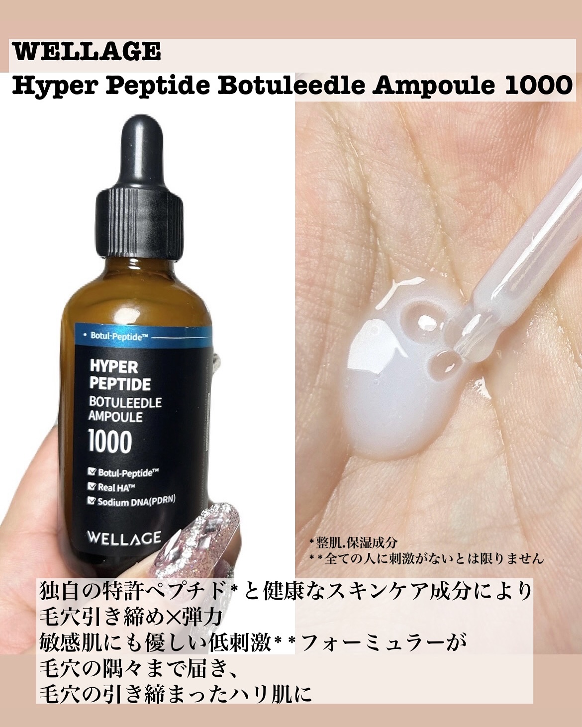 韓国で人気の水分美容液🩵 WELLAGE Real Hyaluronic Blue 100 Ampoule 2023年ファハイアワード1位商品だって!✨ さらりとしたテクスチャーでなめらかな使用感。 超低分子から超高分子までの9重ヒアルロン酸👏 純度100%のヒアルロン酸でしっかり乾燥ケアできちゃう♡