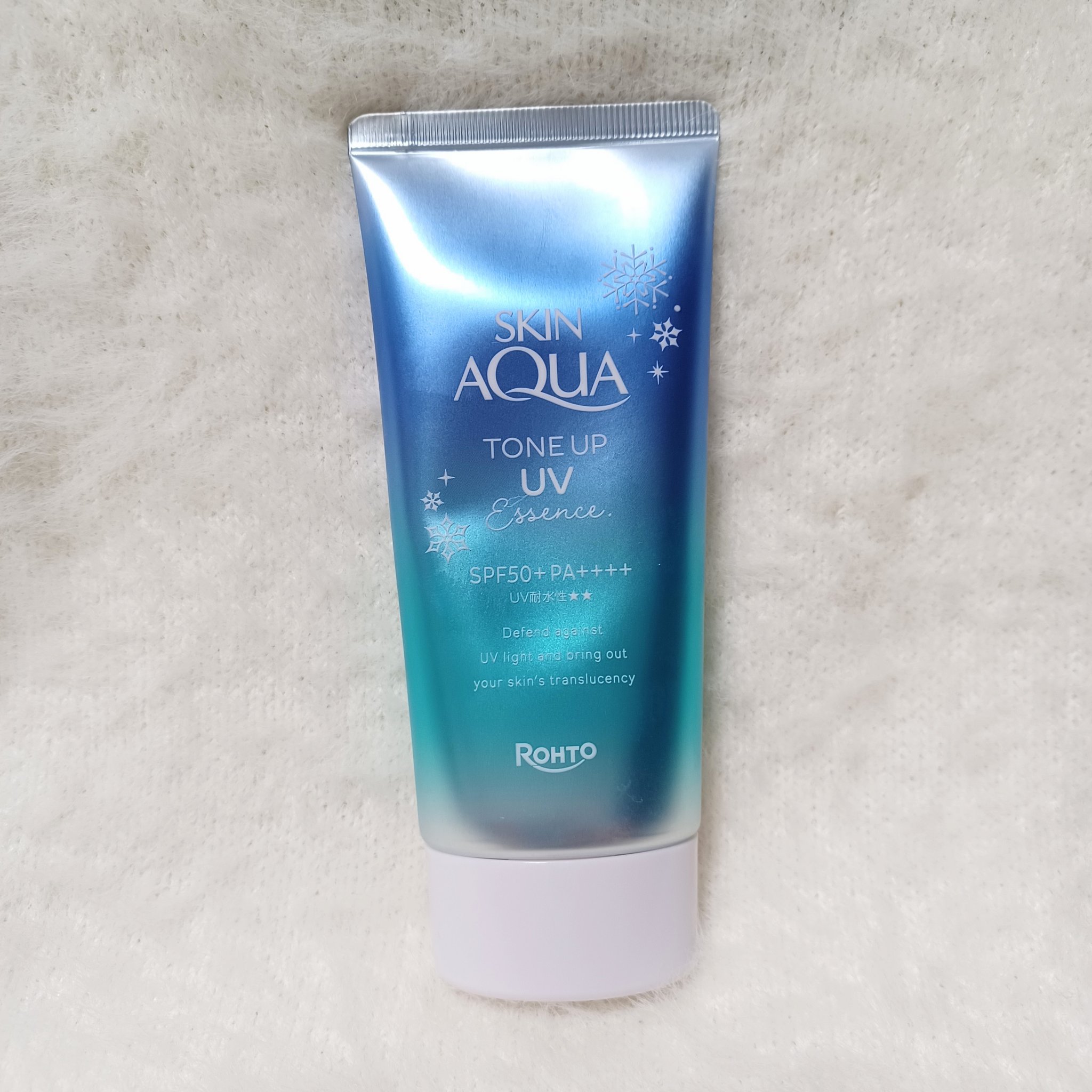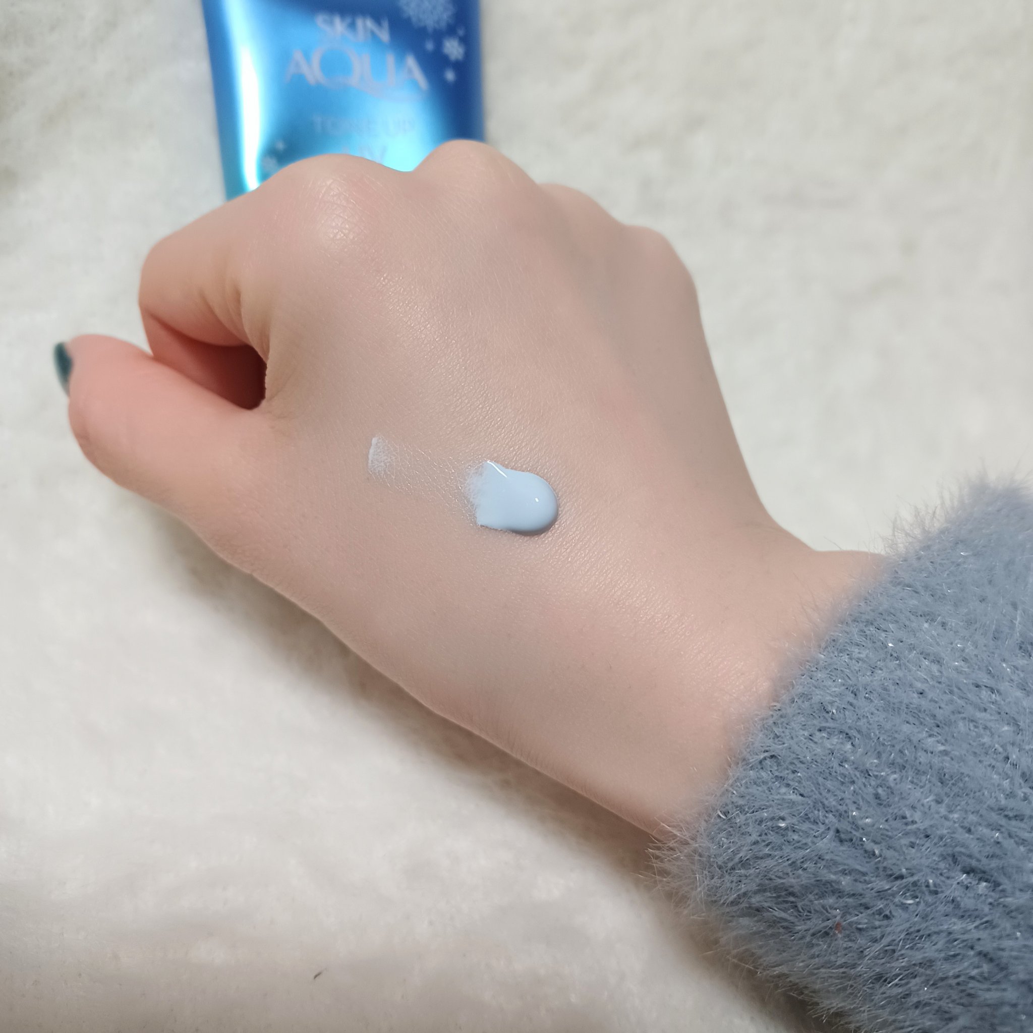 元から色白肌魅せができる ブルーカラーUV🫧🫧🫧 パッケージには、見ての通り雪が降ってます はかなげ可愛い🧚♂️❄️ 別の化粧下地なくてもスキンアクアが日焼け止め兼化粧下地の役割ちゃんと果たしてるからこれだけで十分🐬