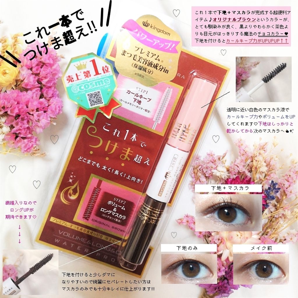 本日の#コスメ購入品#キングダム#キングダムツーステップマスカラ初キングダム♪束間マツゲマスカラで知ってる方も多いであろうコチラのブランド。パケみて、ウォータープルーフで、カールロングボリューム!!フルスペックじゃんよ!とテンション上がって購...